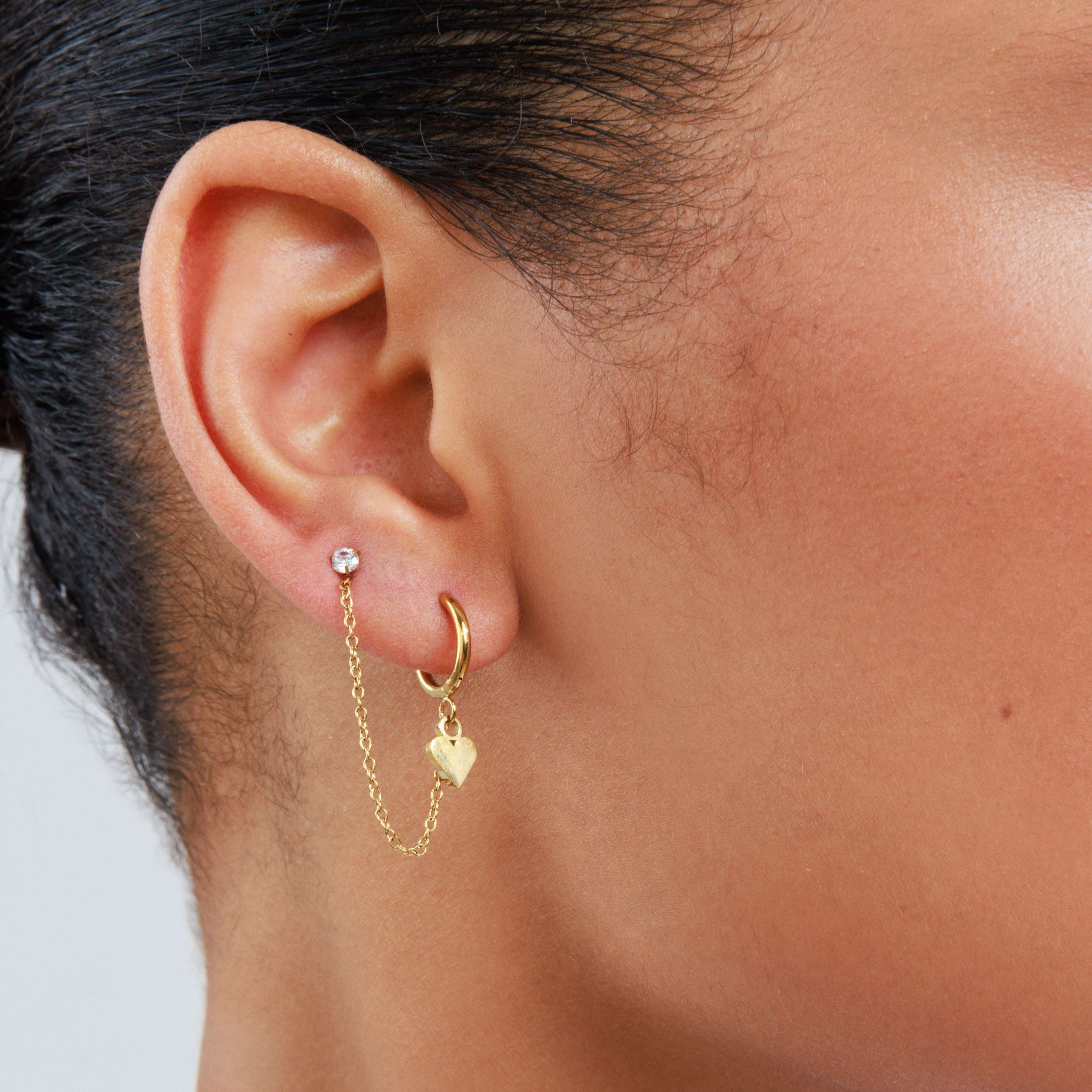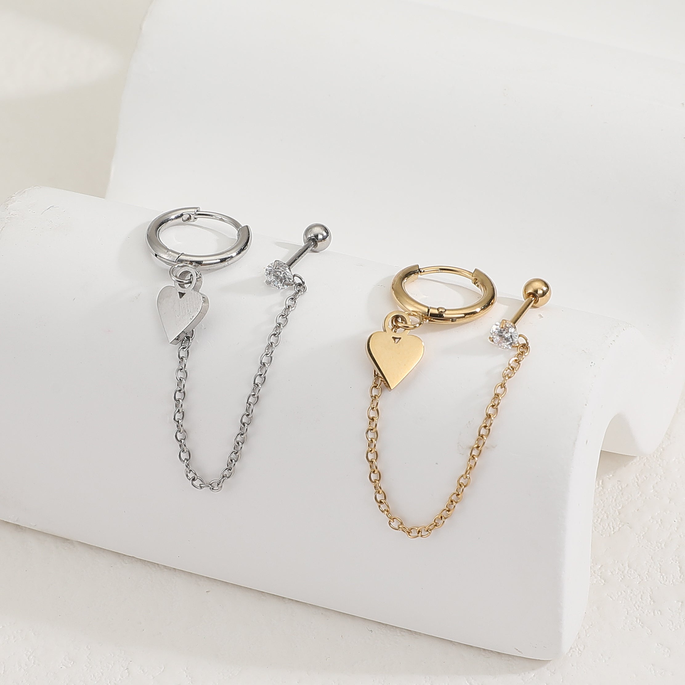 צג אחד של העגיל הוא חישוק קליק קלאסי בשילוב תליון לב עדין ומצידו השני עגיל זרקון עם הברגה אחורית.