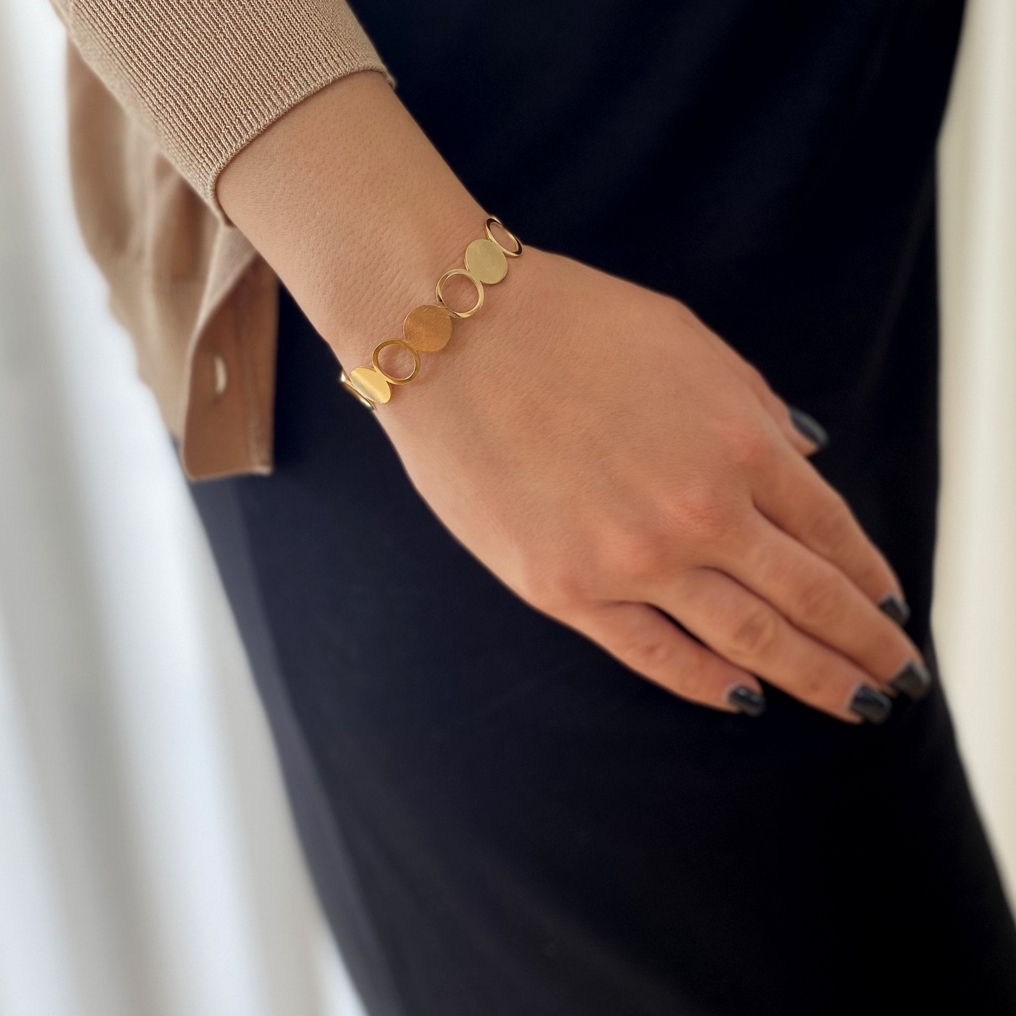 צמיד אמרסון הוא צמיד עיגולים קשיח מהמם בשילוב עיגולים חלולים ומלאים.