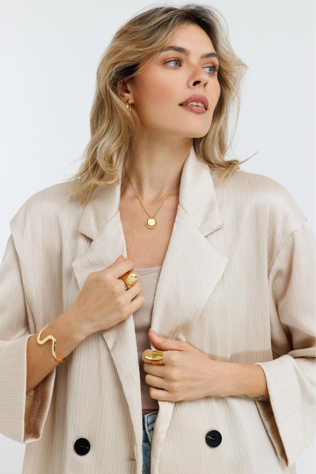 כל תכשיט מהקולקציה, מעגילים ושרשראות ועד לצמידים וטבעות, עשוי מסטיינלס סטיל שמבטיח גימור מושלם ושמירה על מראה חדש לאורך זמן.