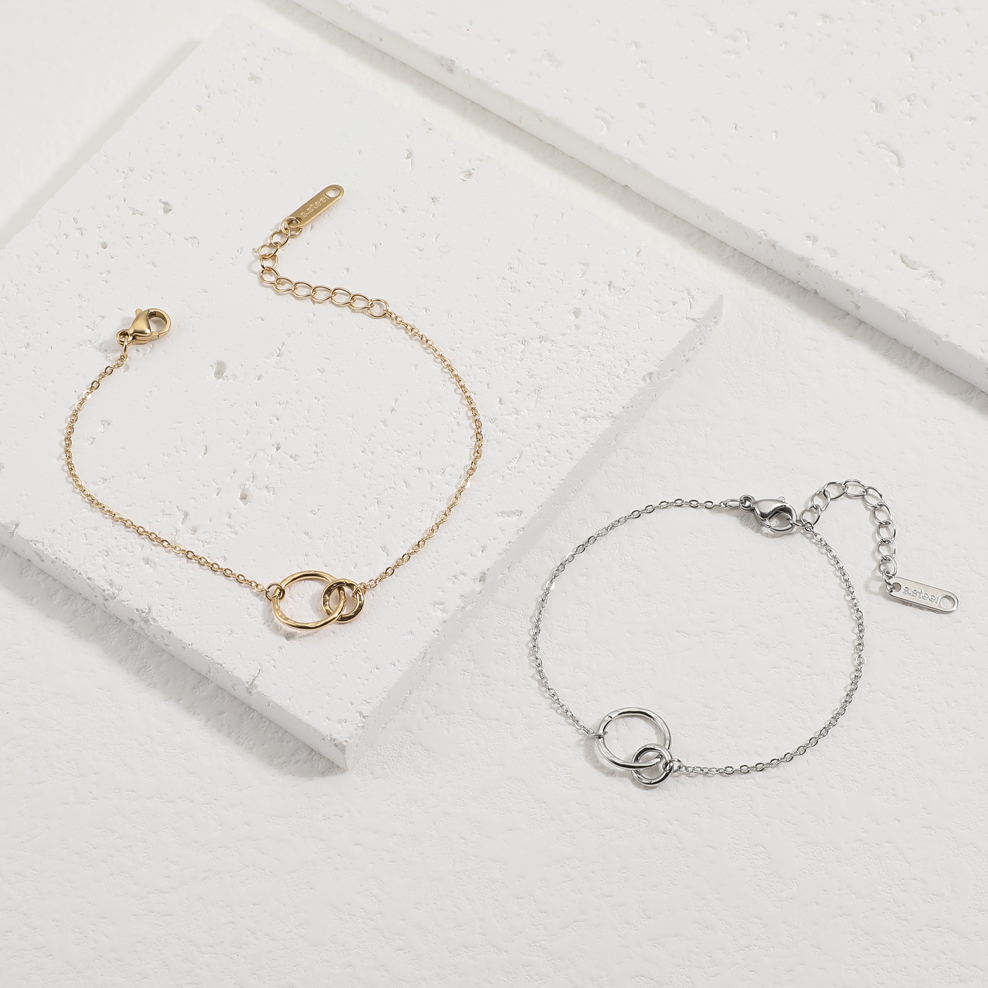 כל תכשיט מהקולקציה, מעגילים ושרשראות ועד לצמידים וטבעות, עשוי מסטיינלס סטיל שמבטיח גימור מושלם ושמירה על מראה חדש לאורך זמן.