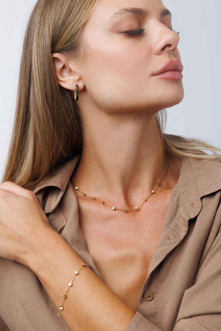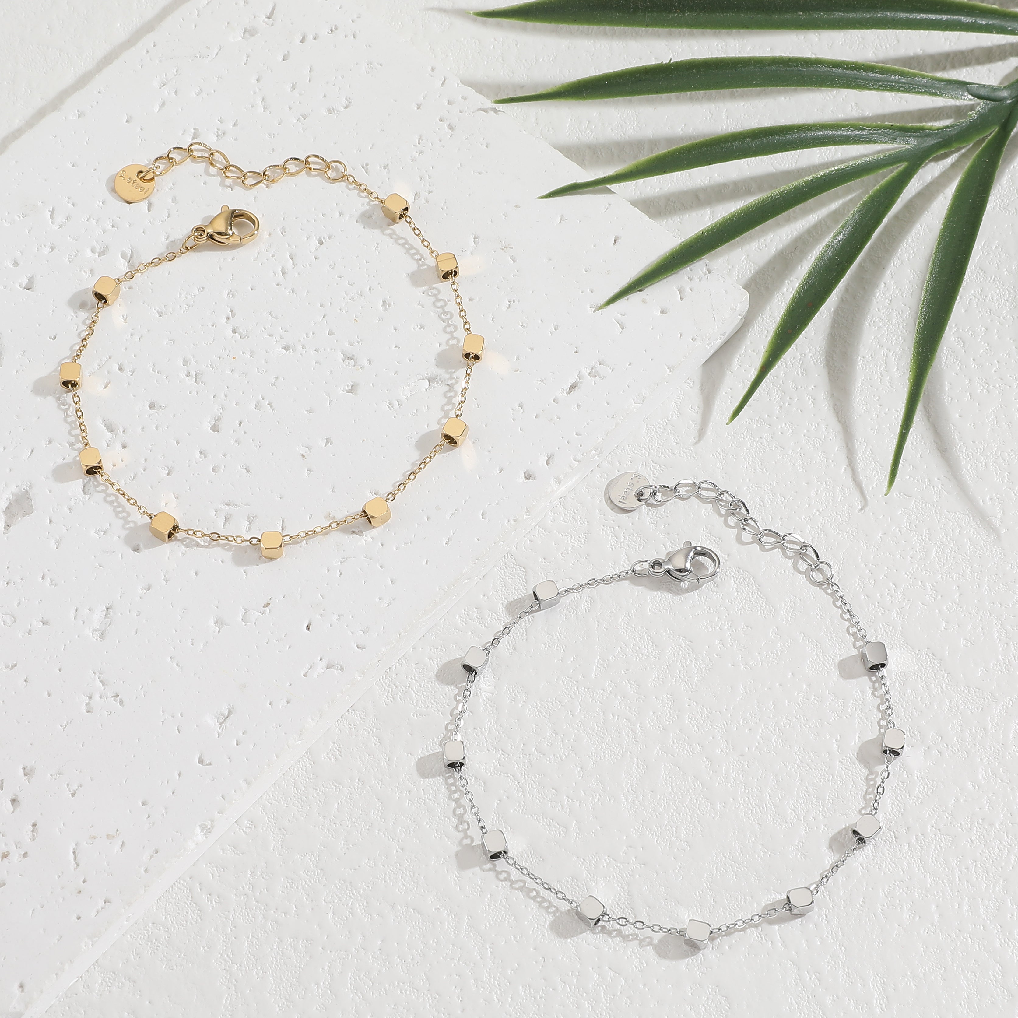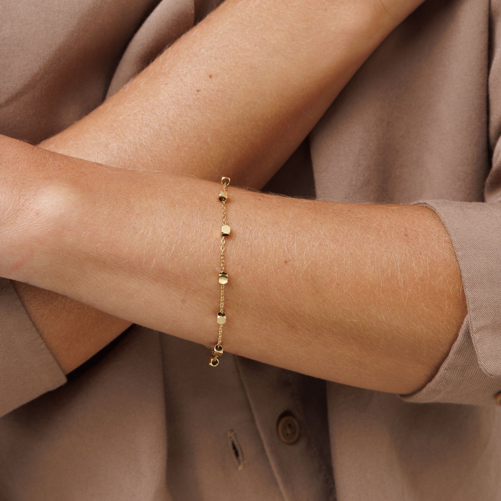 צמיד טייני קיוב הוא צמיד עדין עם תליונים מרובעים קטנים למראה קלאסי ונצחי.