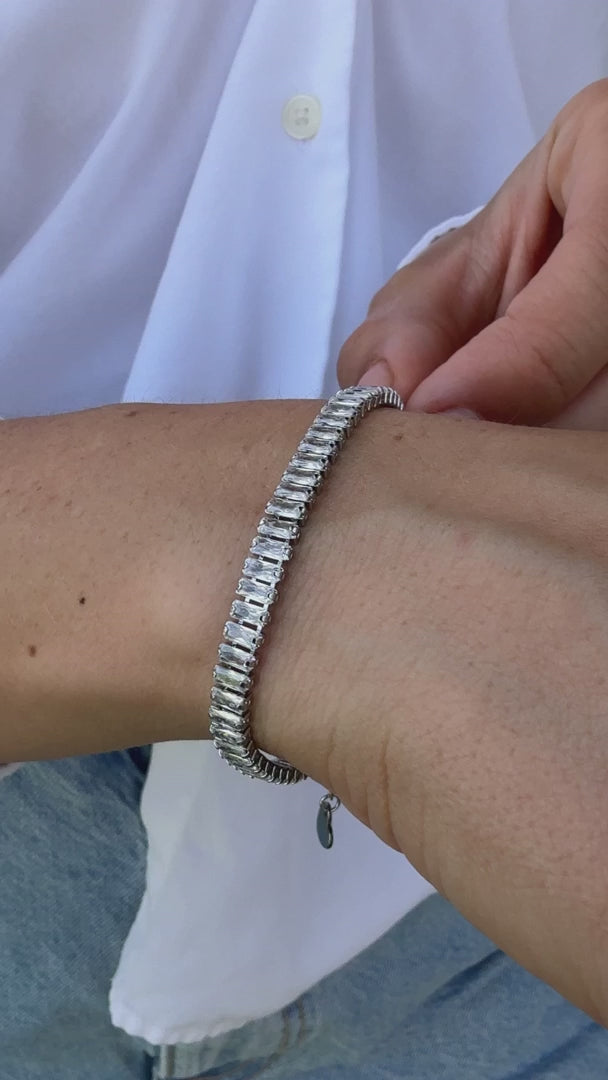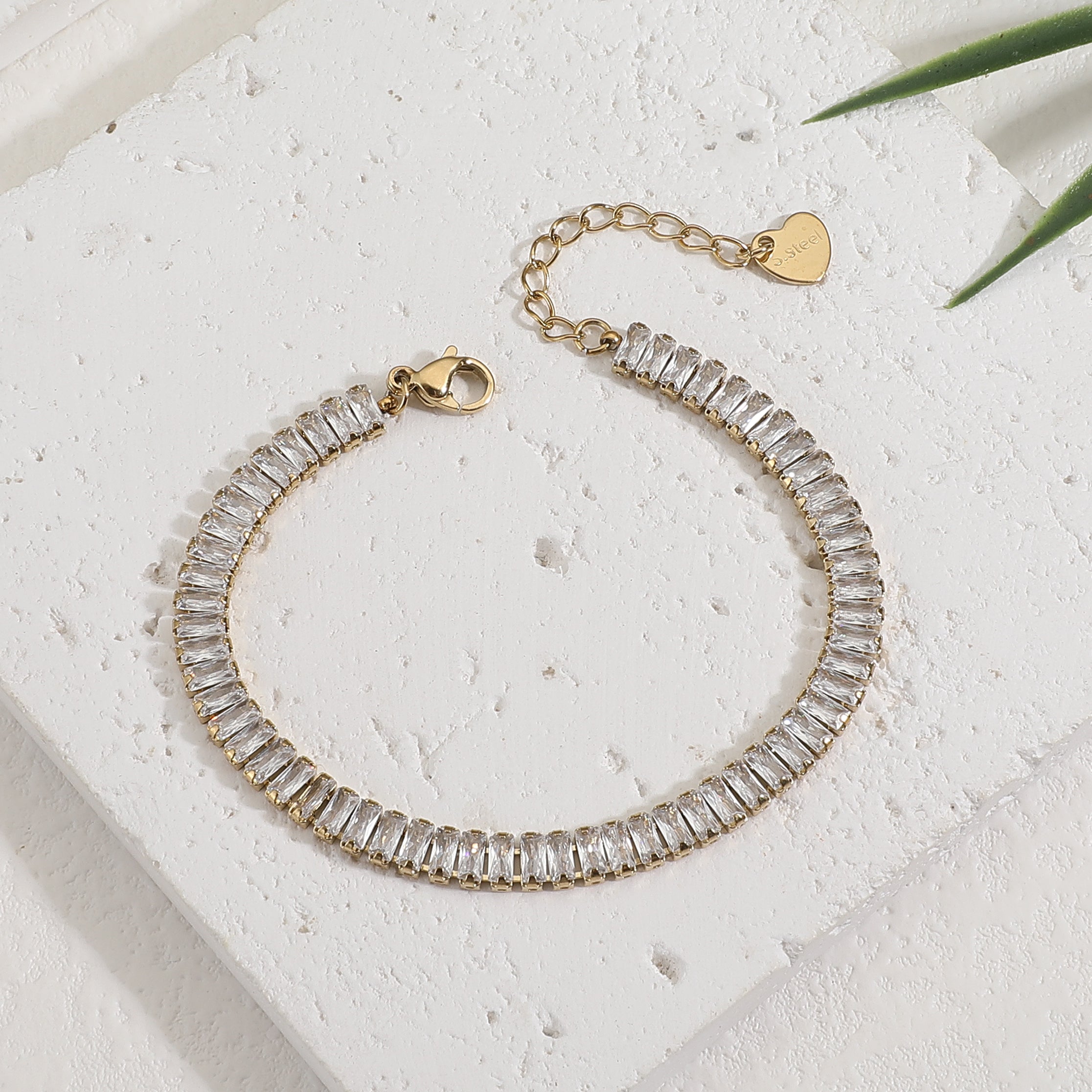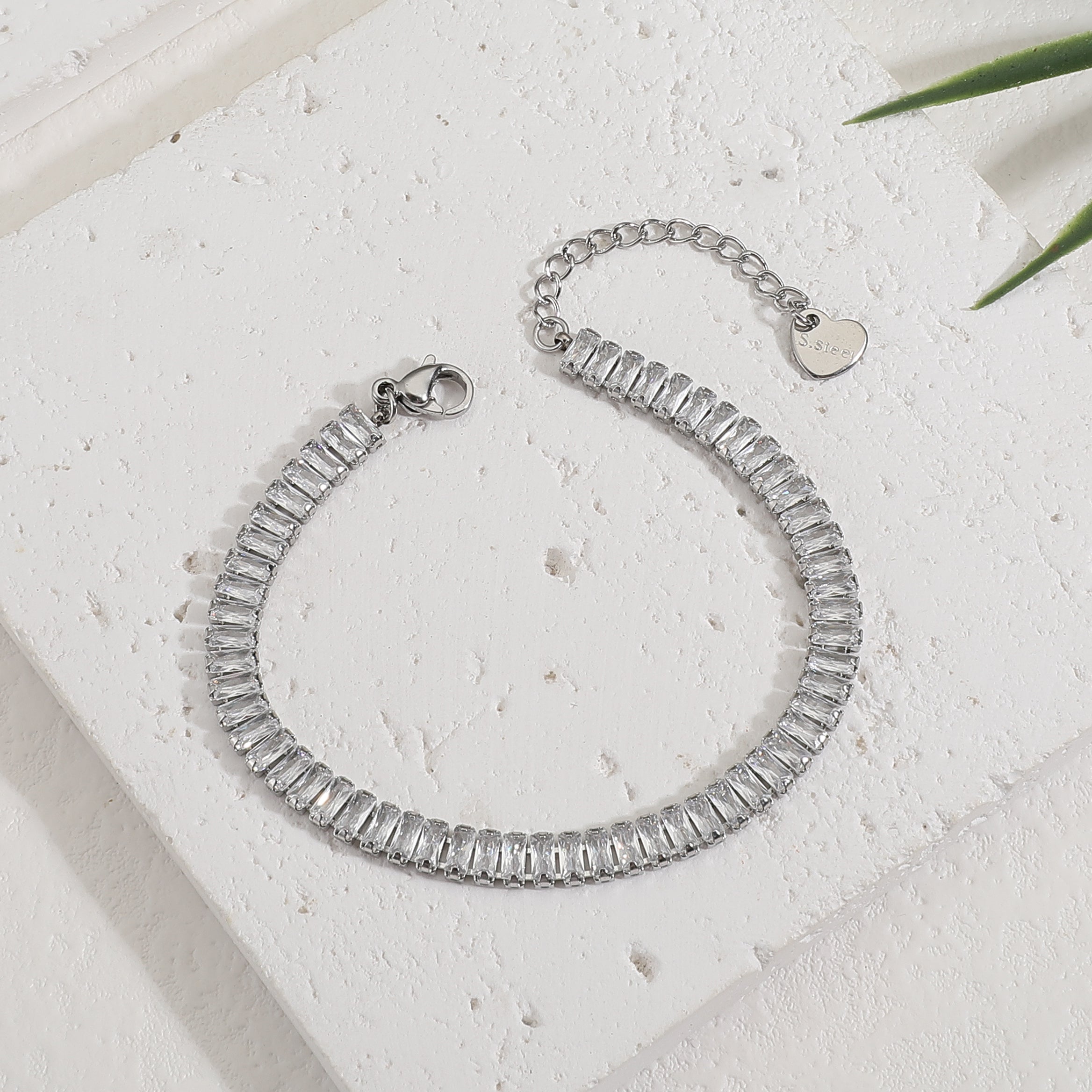 צמיד טניס אלכסה סלים הוא צמיד טניס משובץ זרקונים בצורה מלבנית עם נוכחות מהפנטת.