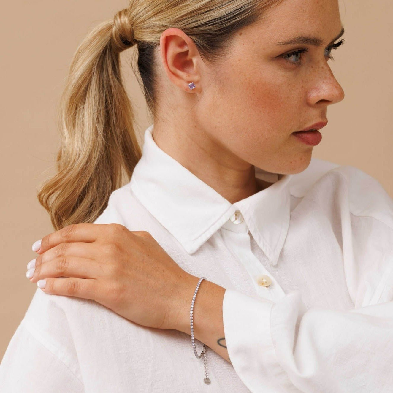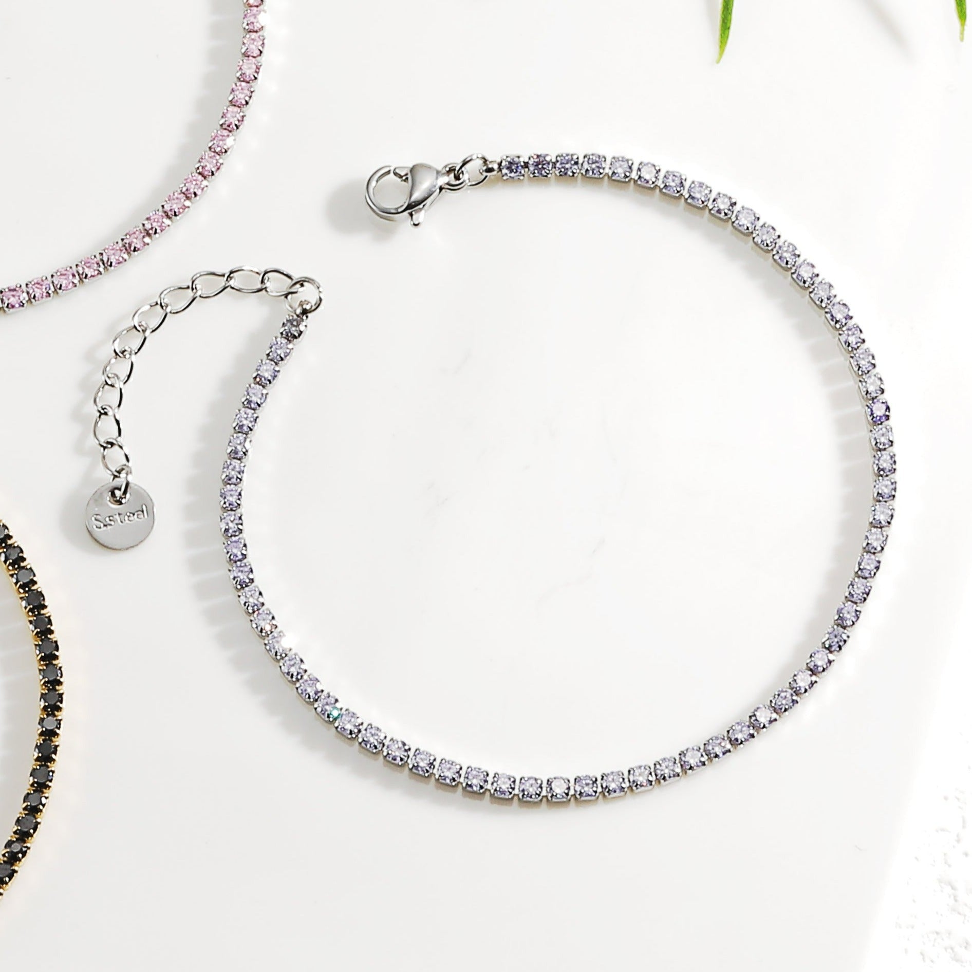 צמיד טניס "נולה" ועגילי זרקון סגול בהיר