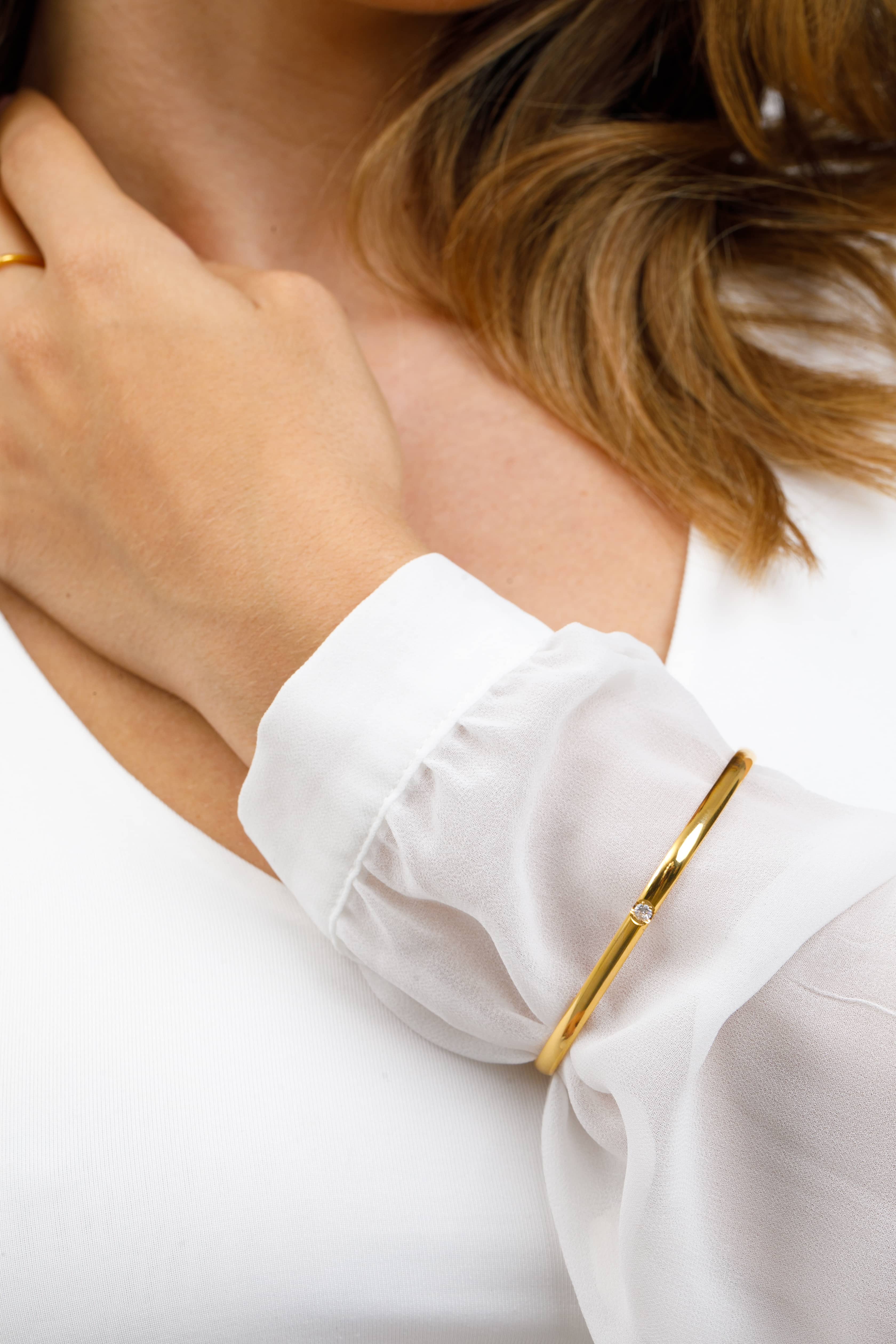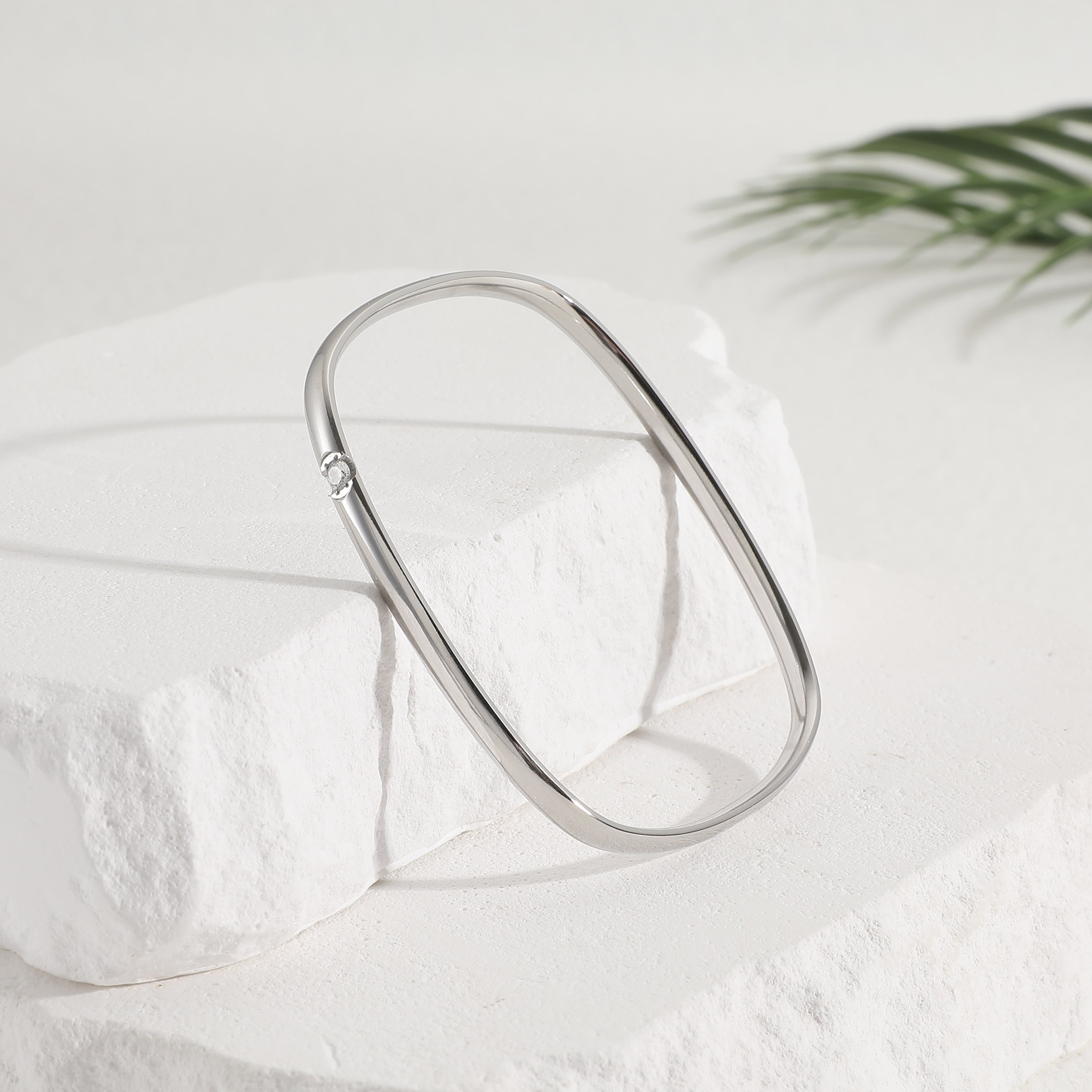 צמיד קשיח סגור מבריק ודק בצורת ריבוע בשילוב זרקון עדין.