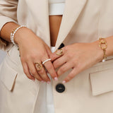 צמיד מקינון פרל הוא צמיד הורס עם אלמנטים מעגולים בשילוב סטייל גורמט ופנינה קלאסית.
