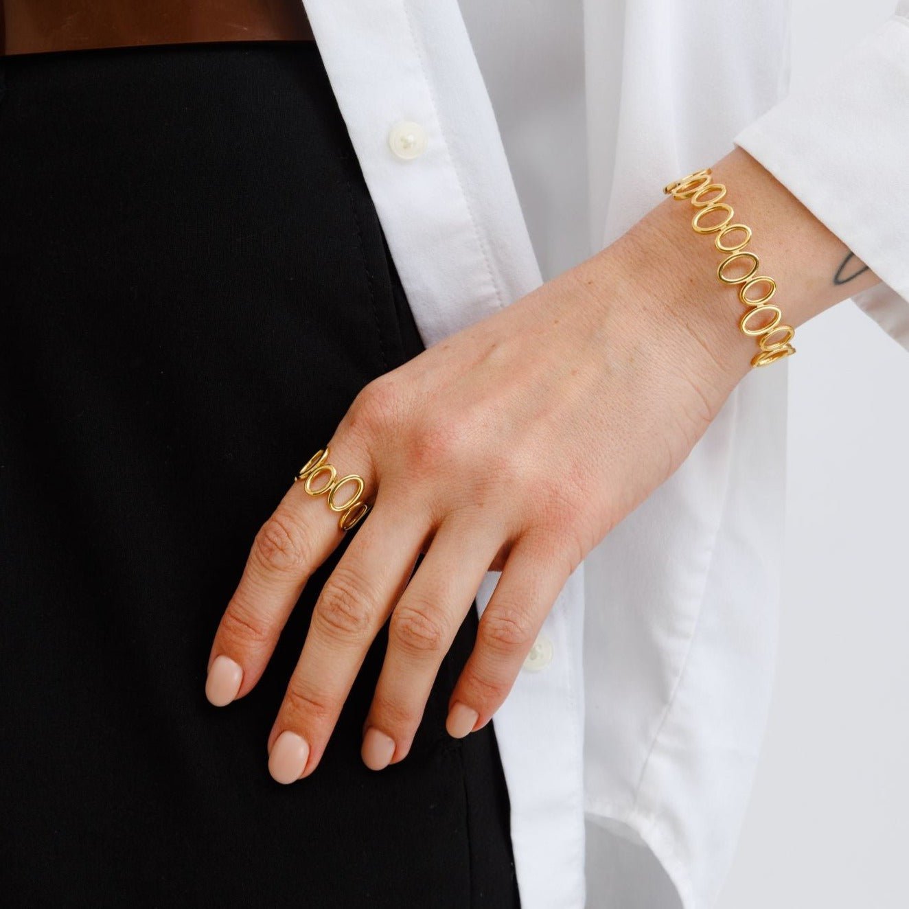כל תכשיט מהקולקציה, מעגילים ושרשראות ועד לצמידים וטבעות, עשוי מסטיינלס סטיל שמבטיח גימור מושלם ושמירה על מראה חדש לאורך זמן.