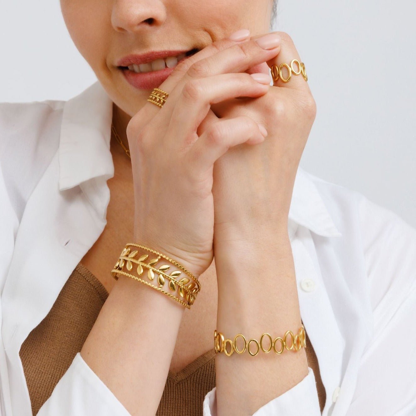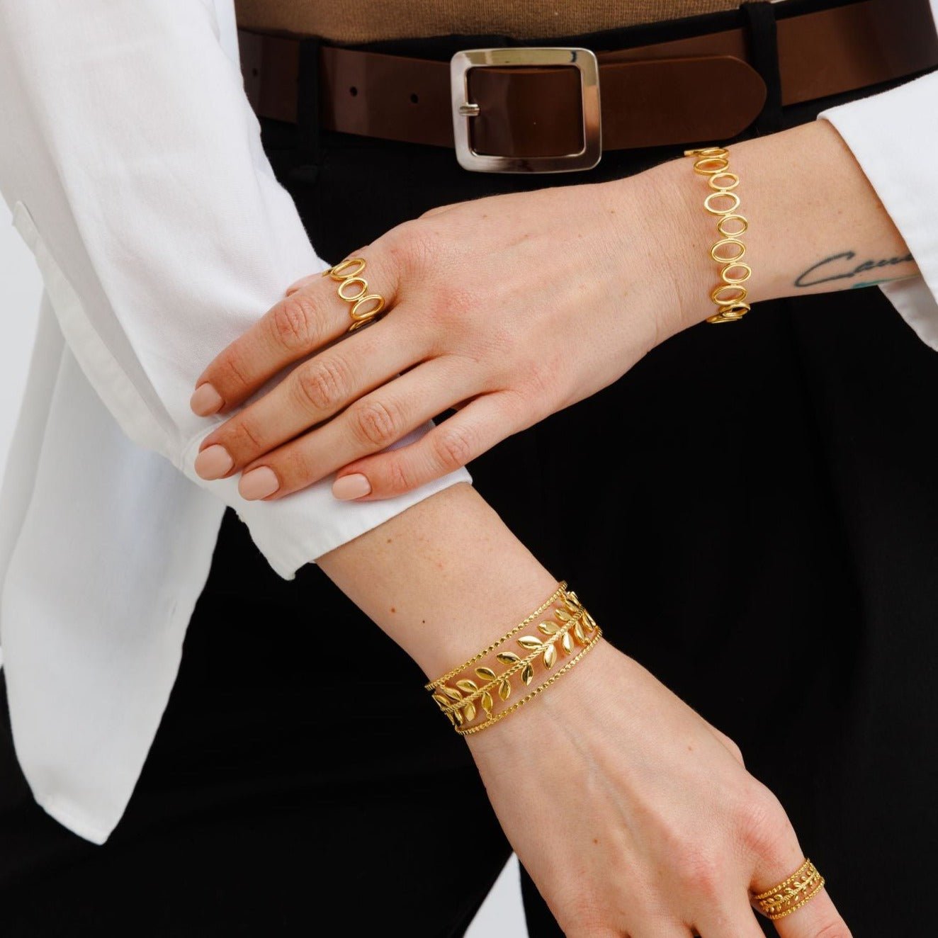 צמיד ניו אייריס הוא צמיד קשיח קלאסי ומהמם בשילוב פטרן עיגולים מנצח.