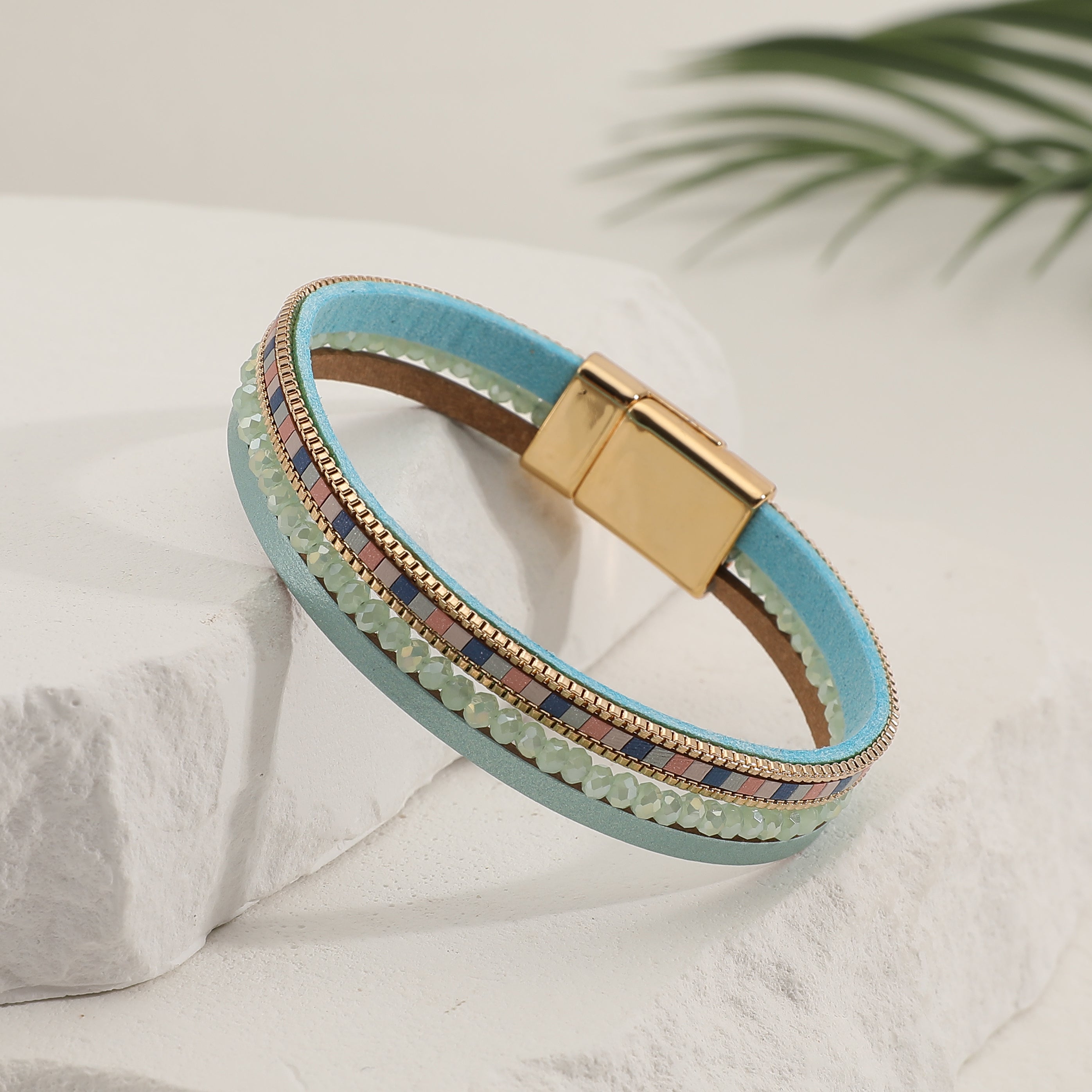 הצמיד עשוי מדמוי עור ונסגר עם סגירת מגנט לענידה נוחה של הצמיד.