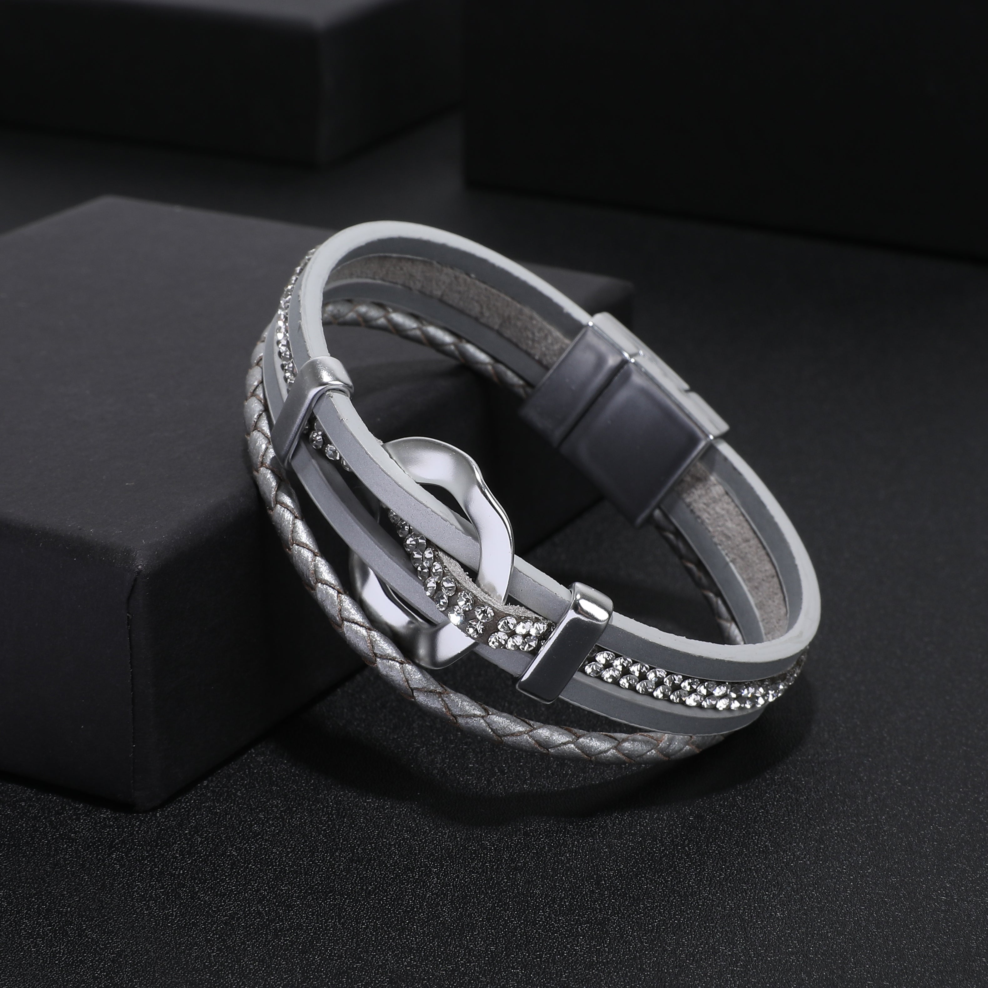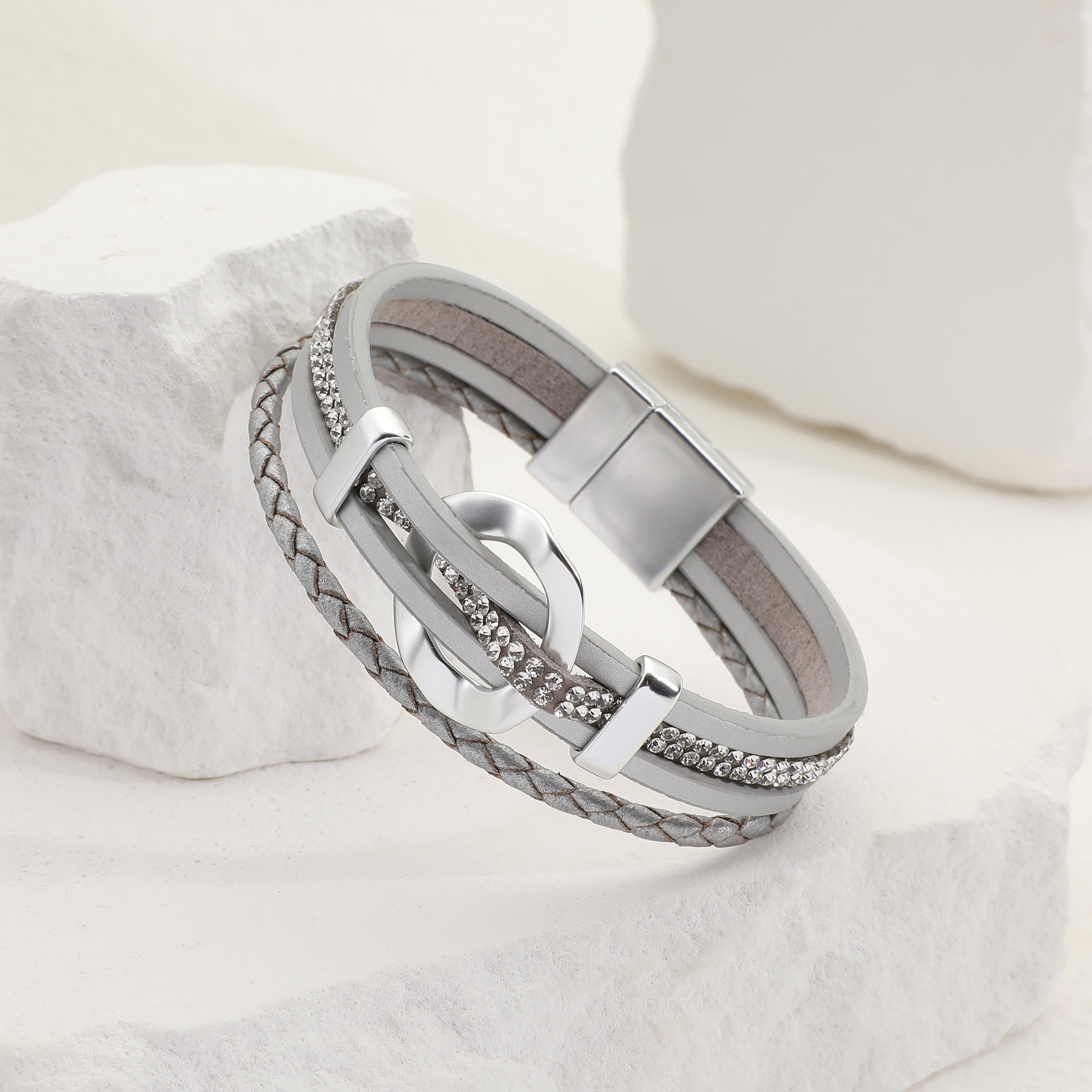 הצמיד עשוי מדמוי עור ונסגר עם סגירת מגנט לענידה נוחה של הצמיד.