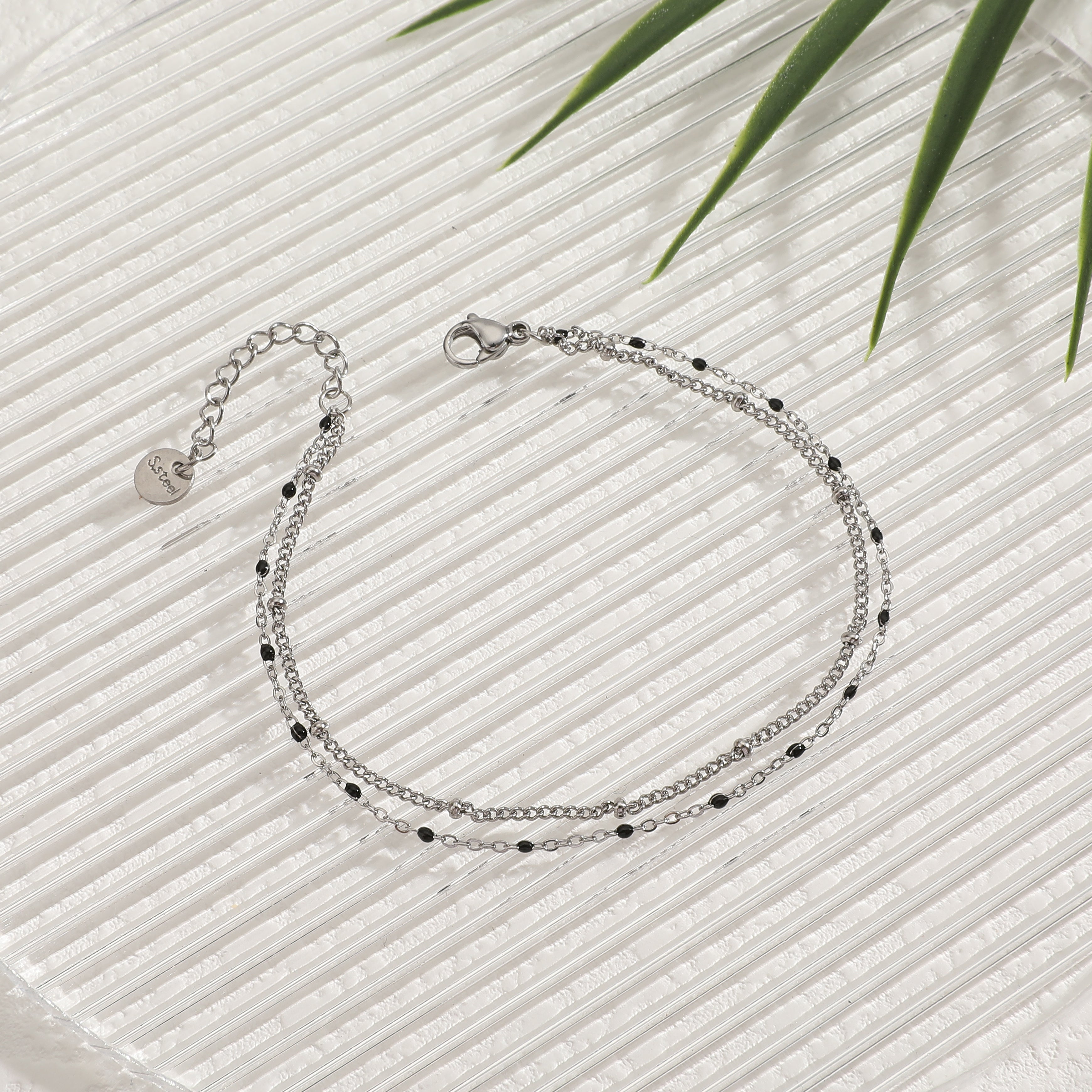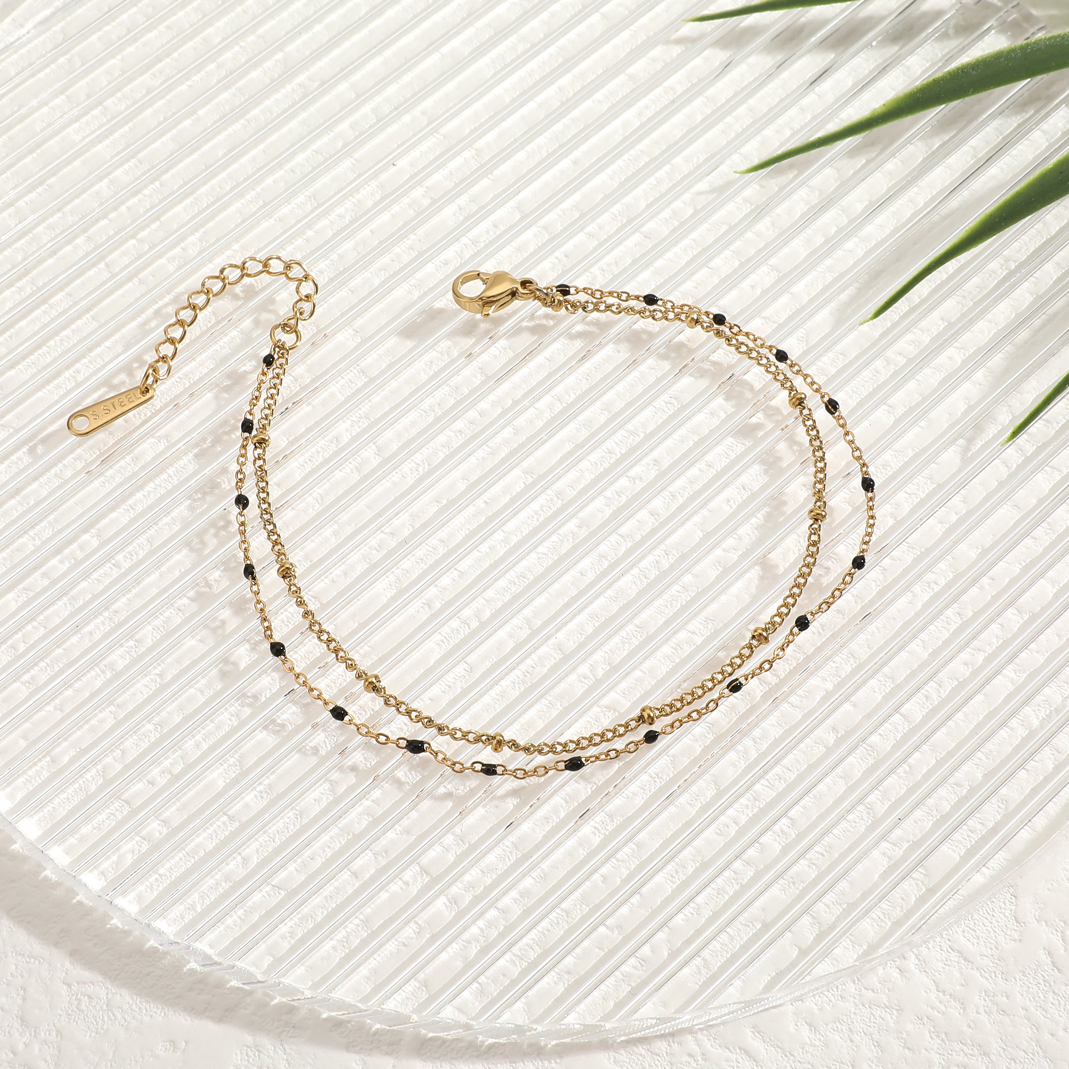 מחפשת צמיד רגל כפול עם חרוזים שחורים?