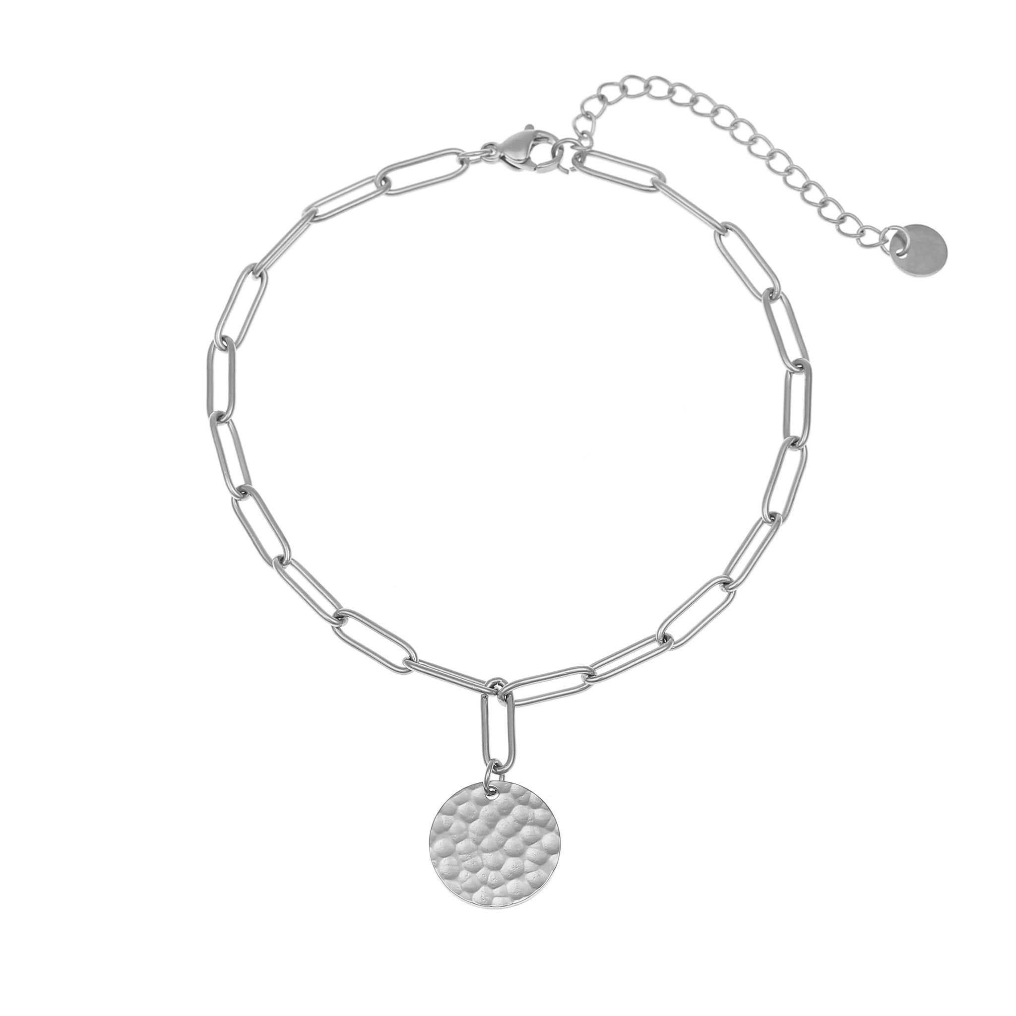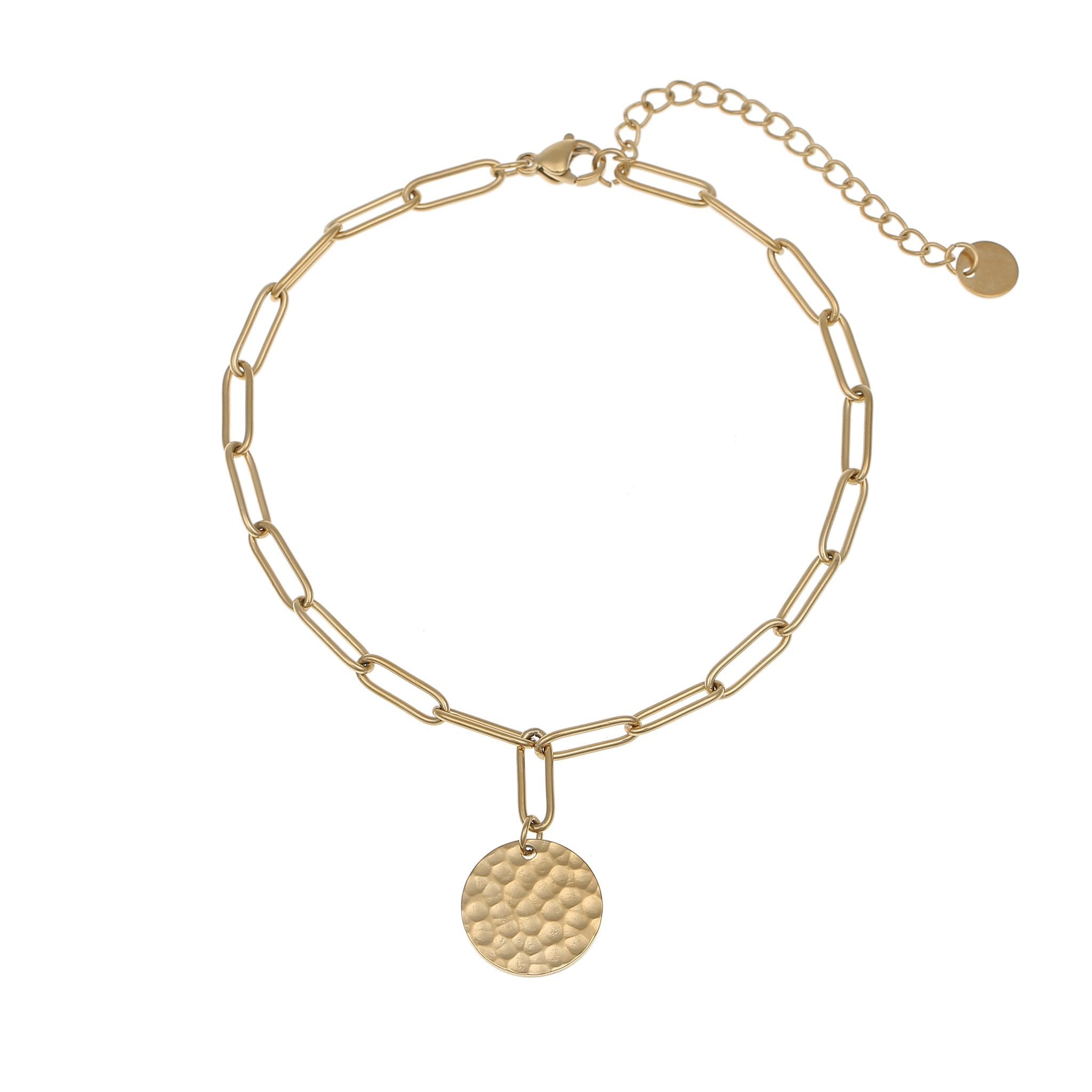הצמיד משלב תליון עגול מרוקע וייחודי.