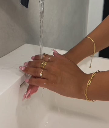 ניתן להביא במגע עם מים אולם יש לקחת בחשבון שכמו כל ציפוי/צבע ייתכן והגוון יכהה/ישתנה לאורך זמן. אם רוצים לשמור על התכשיט כפי שהיה זמן הקניה, אין להביאו במגע עם מים. יש להימנע להביא במגע עם כלור/ בושם/ חומרים כימיים שונים.