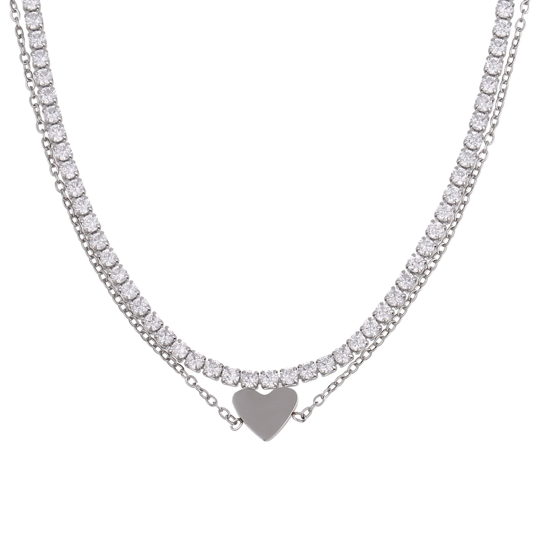 - תכשיטי Stainless Steel בגוון כסף עם אבנים מודבקות