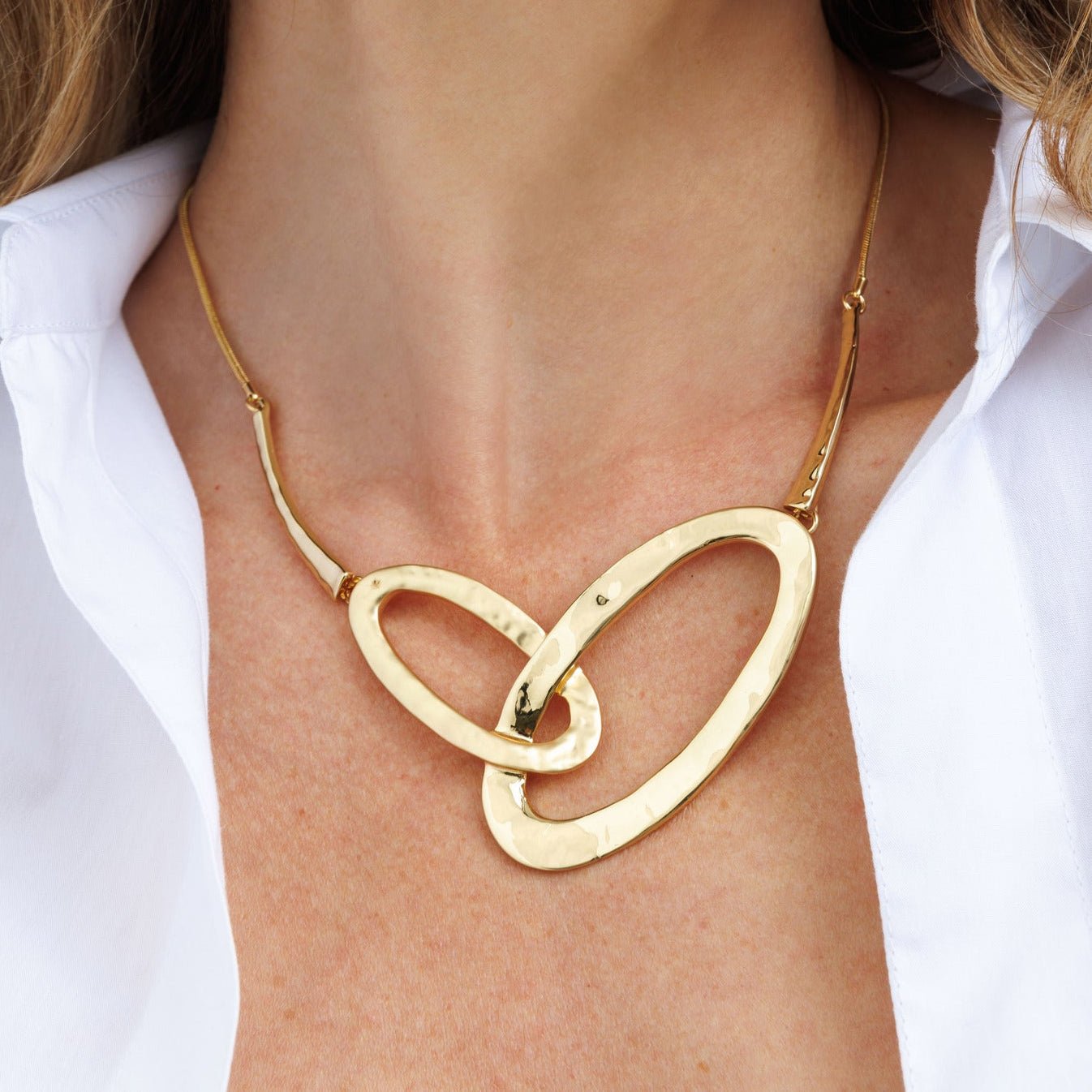 שרשרת עיגולים גאומטרית שמשלבת באופן מושלם בין נוכחות לבין תשומת לב לפרטים הקטנים.