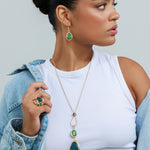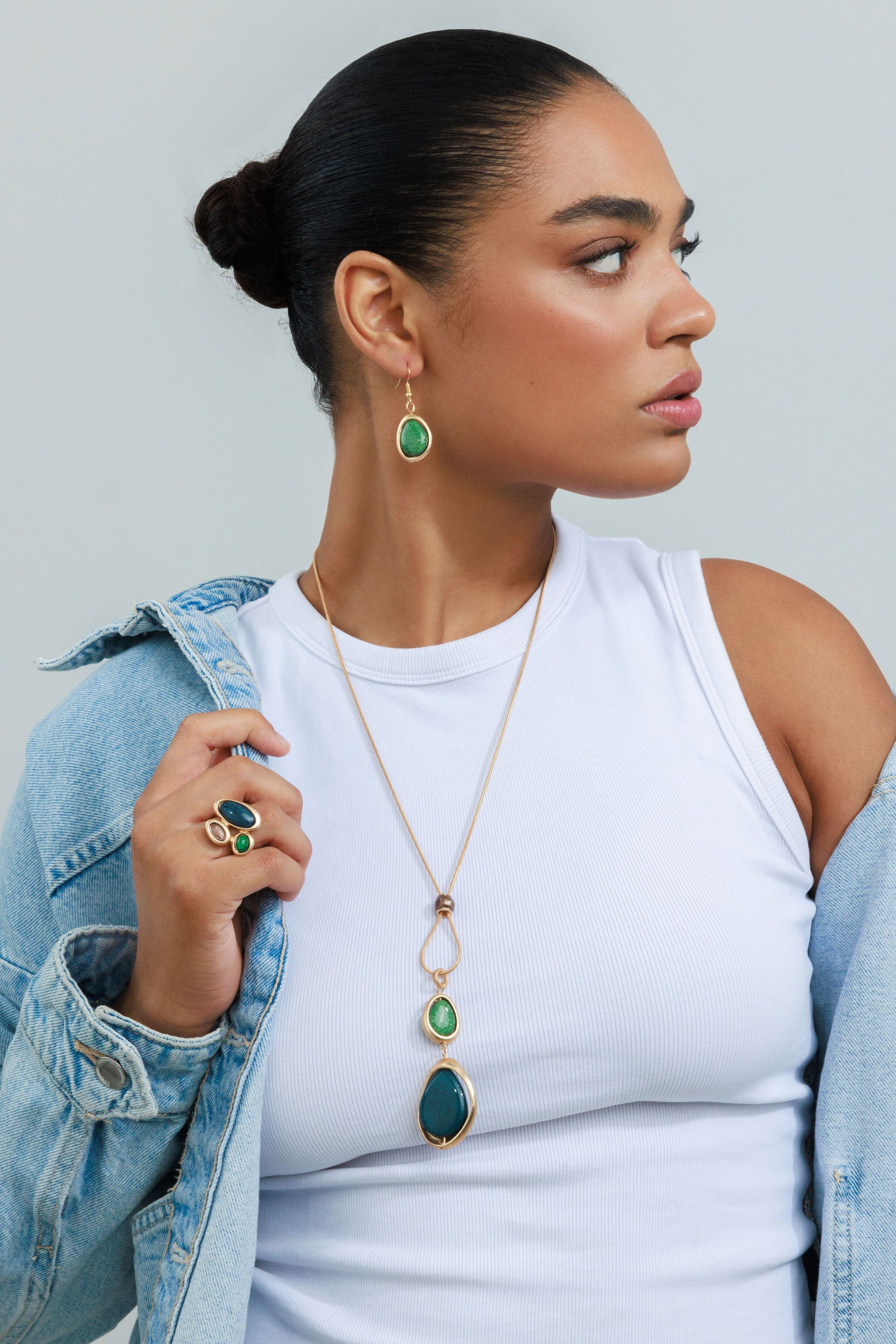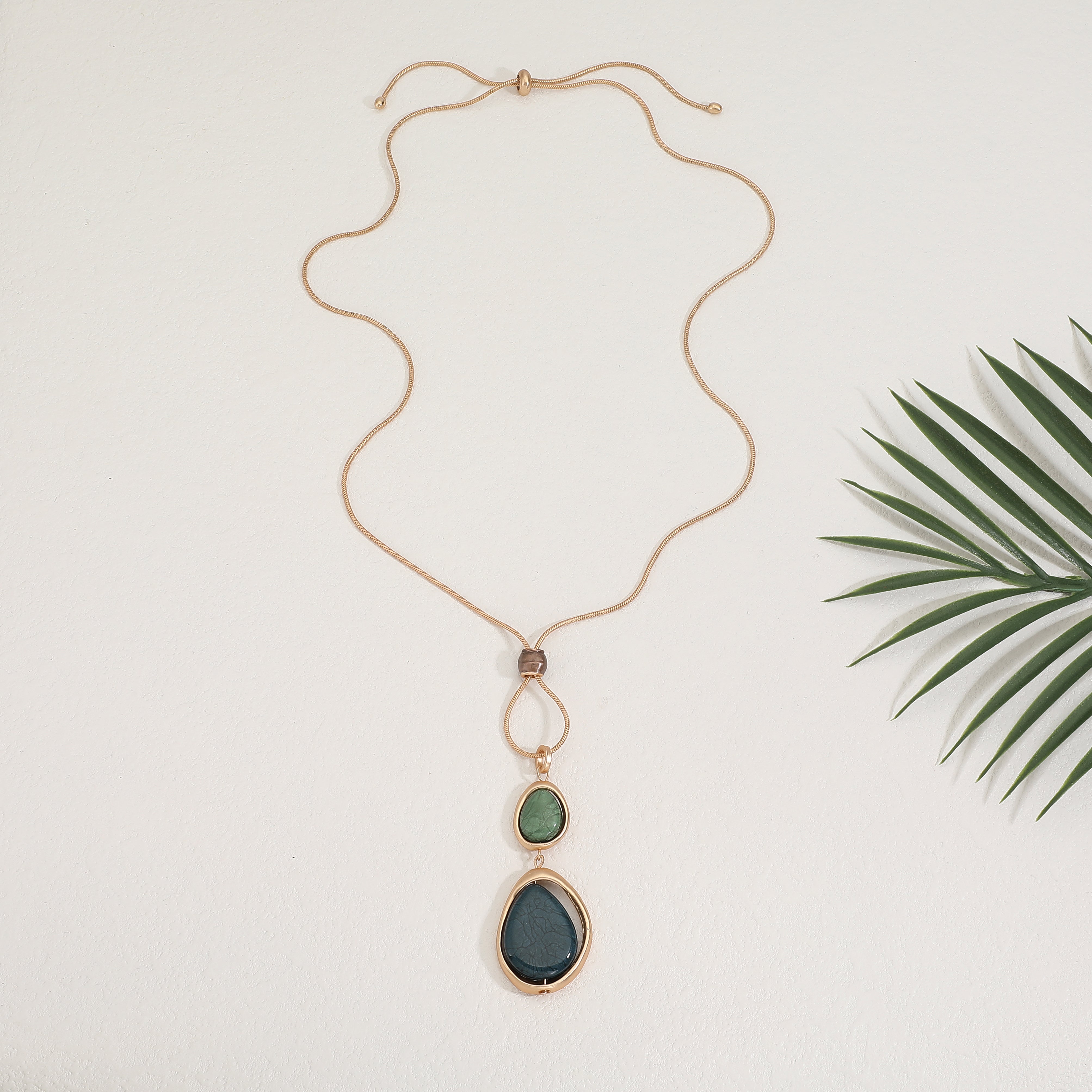שרשרת ארוכה דאייר היא שרשרת ארוכה מעוצבת בעלת תליונים מעוגלים עם אלמנטים ייחודיים בגווני כחול-ירוק.