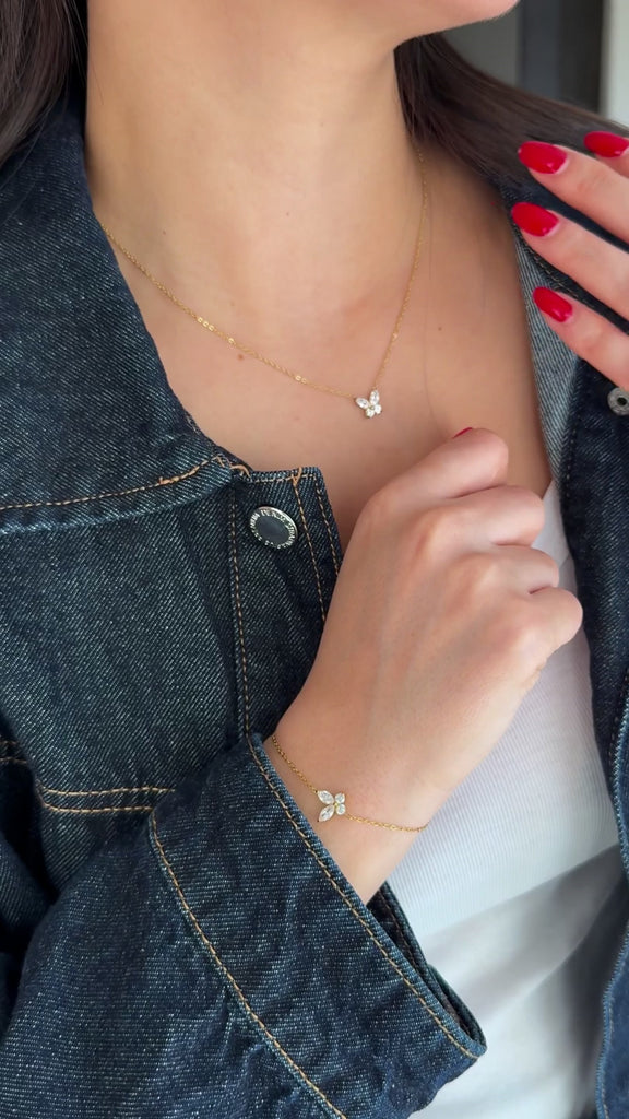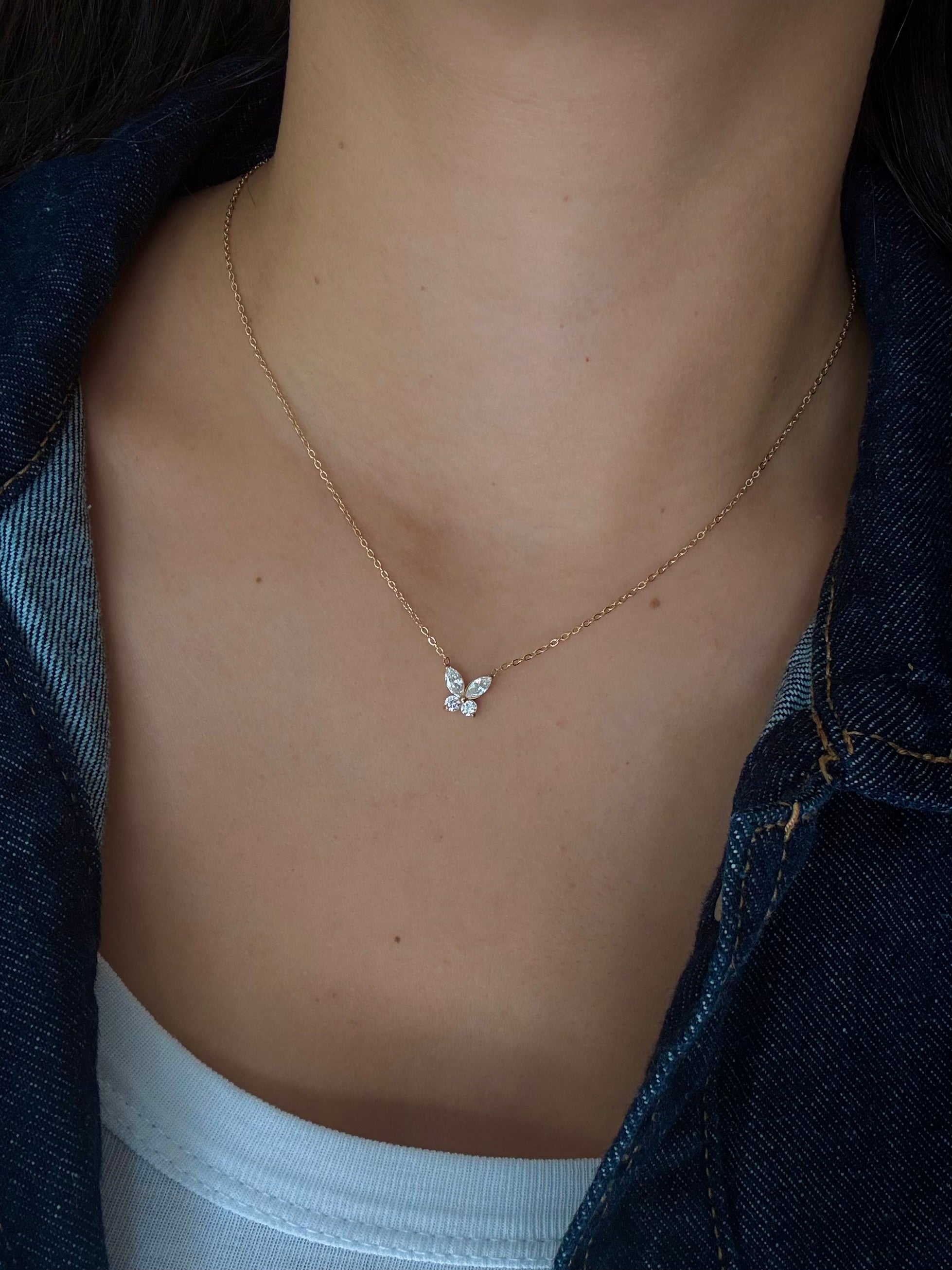 שרשרת בלינג פרפר היא שרשרת עדינה תליון פרפר משובץ אבני זרקון מנצנצות בחיתוך מרקיז. העיצוב המינימליסטי והרומנטי הופך אותה לפריט מושלם לענידה יומיומית או כמתנה מרגשת שתמיד כיף לקבל.