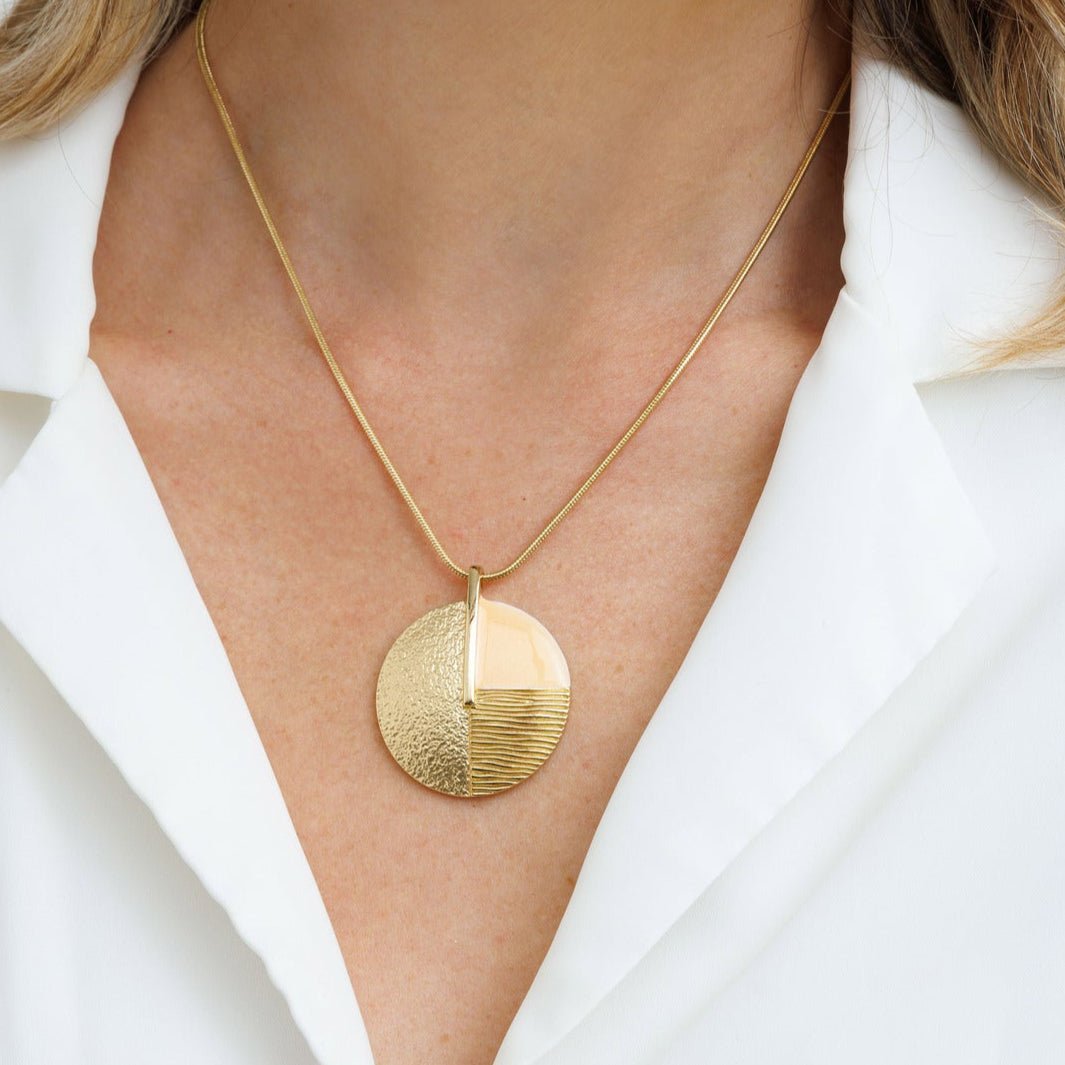 שרשרת ברייס גולד היא שרשרת עם תליון מעוגל סופר יחודית שמשלבת פטרנים שונים וריקועים מעניינים בשילוב גווני פודרה.