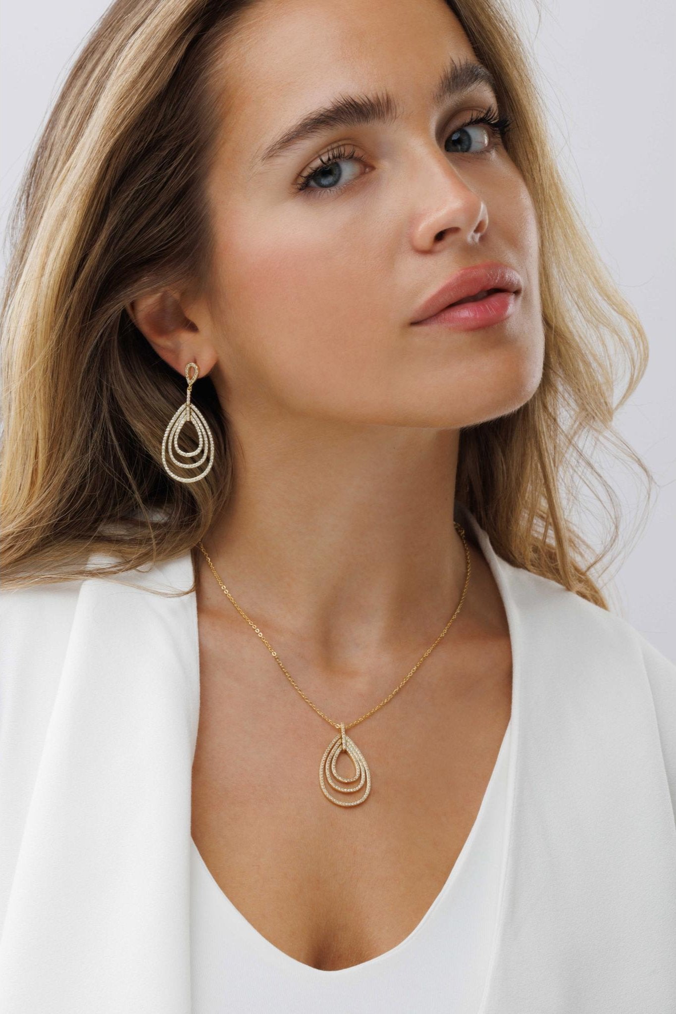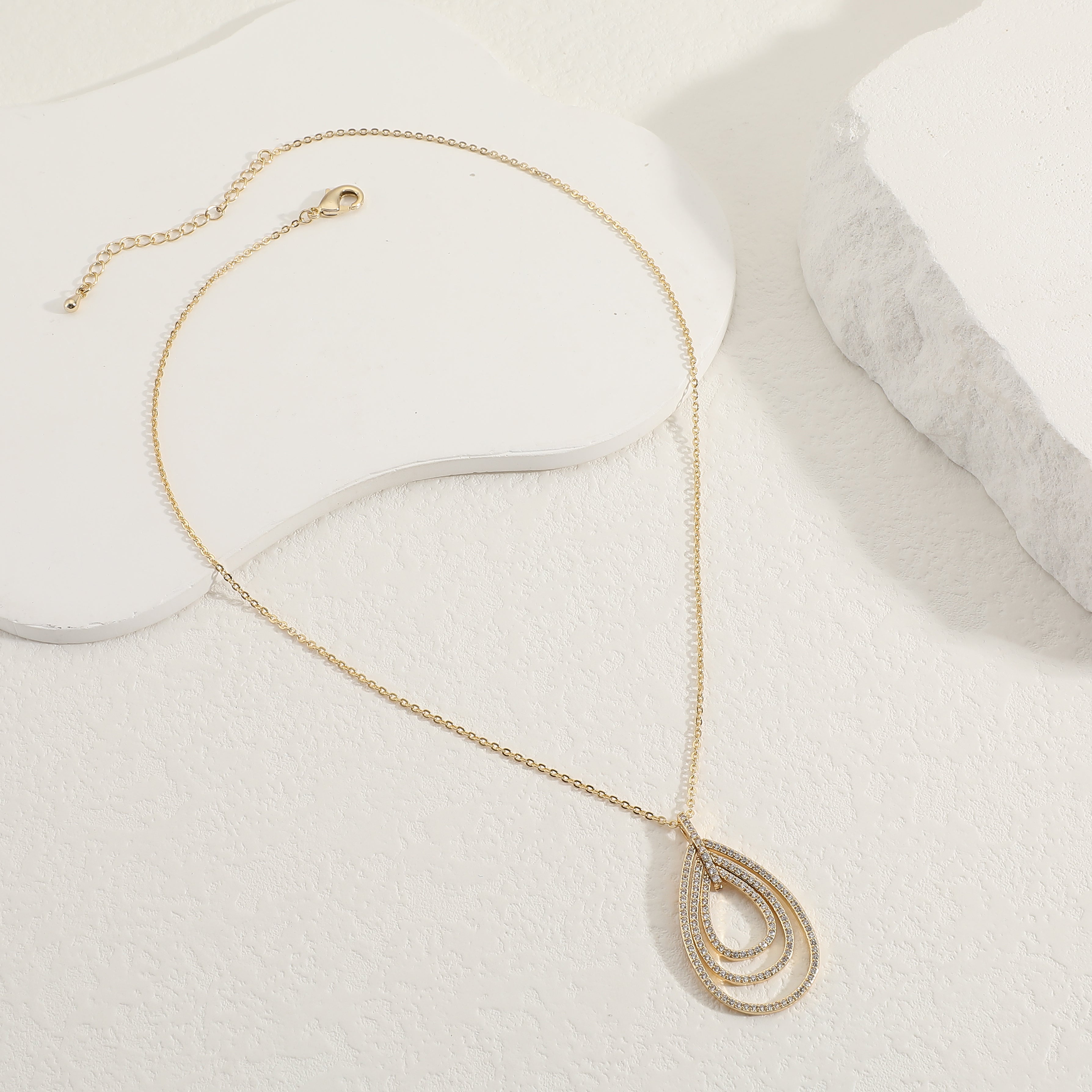 שרשרת ניו דרופ טריפל בלינג היא שרשרת טיפה מלאת נצנוץ ומתאימה בדיוק לשדרוג הלוק למראה גלאם.