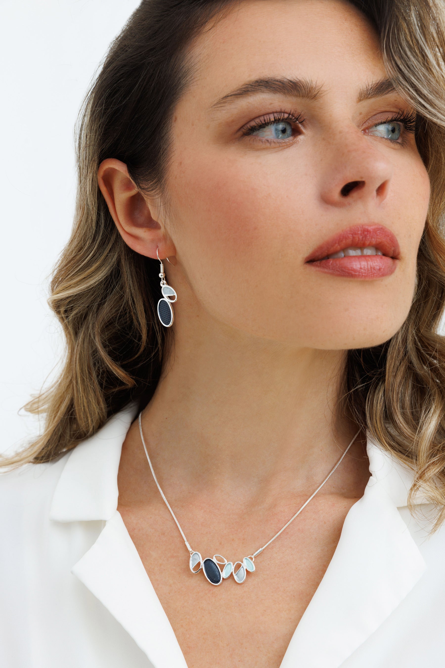 שרשרת האריס היא שרשרת תליונים מעוצבים בגווני אפור עמוק עם אלמנט מרוקע ועדין.