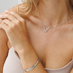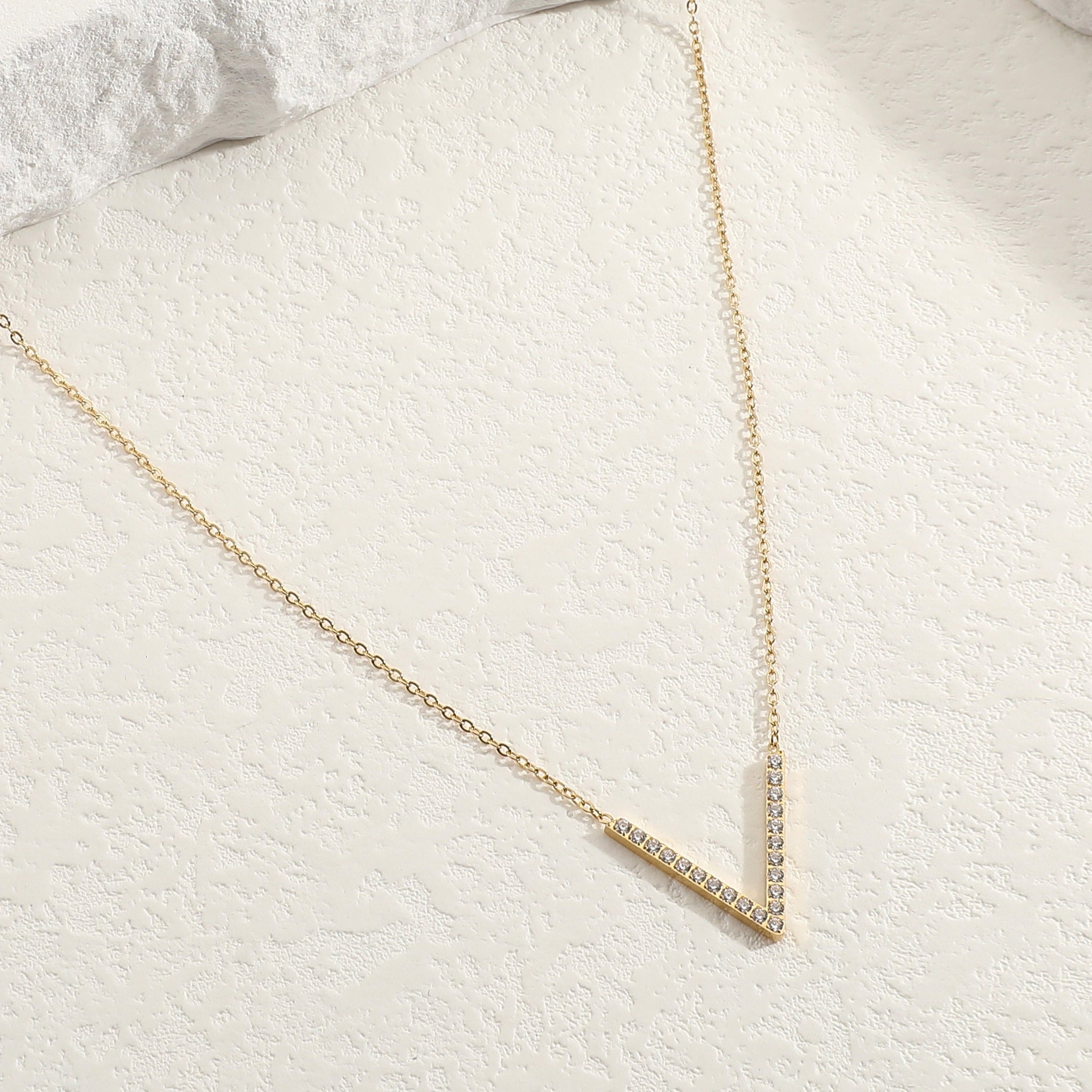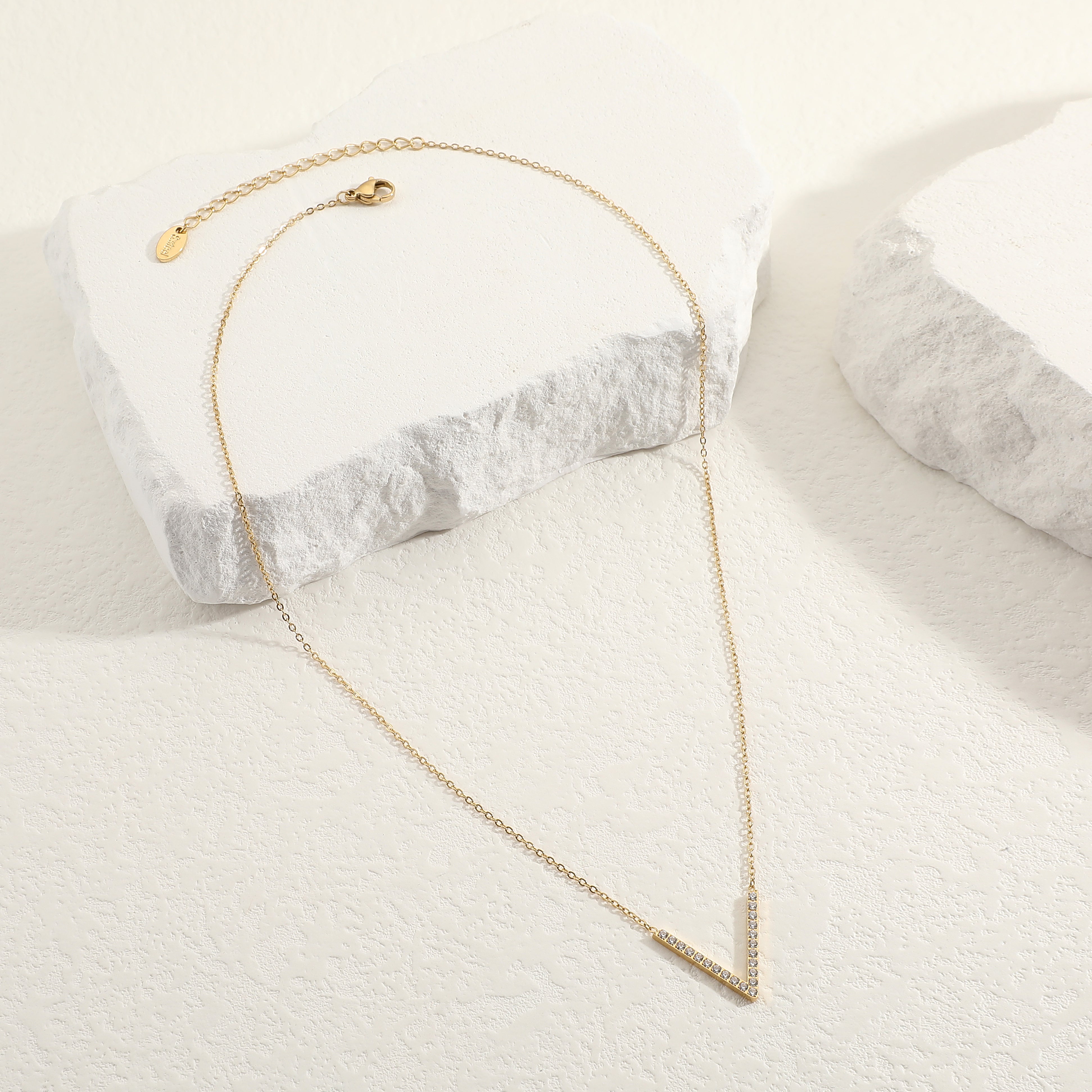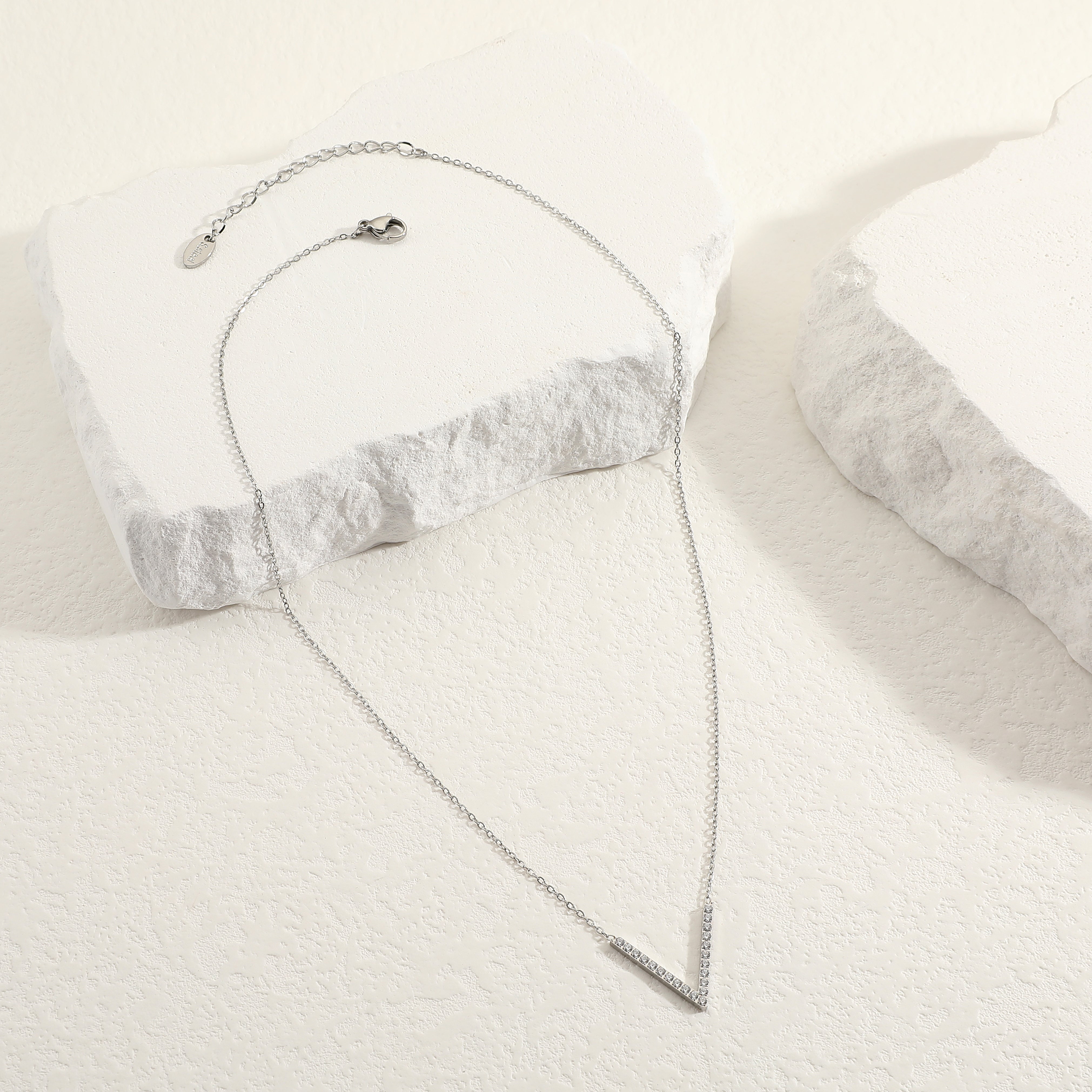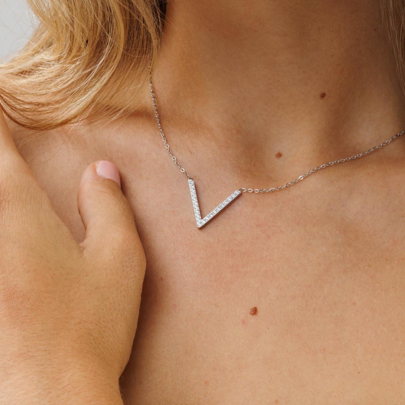 שרשרת וי בלינג גדול הינה שרשרת וי גדול עדינה בשיבוץ זרקונים.