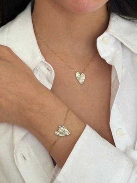 שרשרת וצמיד לב רפאלס בלינג הוא סט לב מלא קלאסי ומנצח בשיבוץ זרקונים.