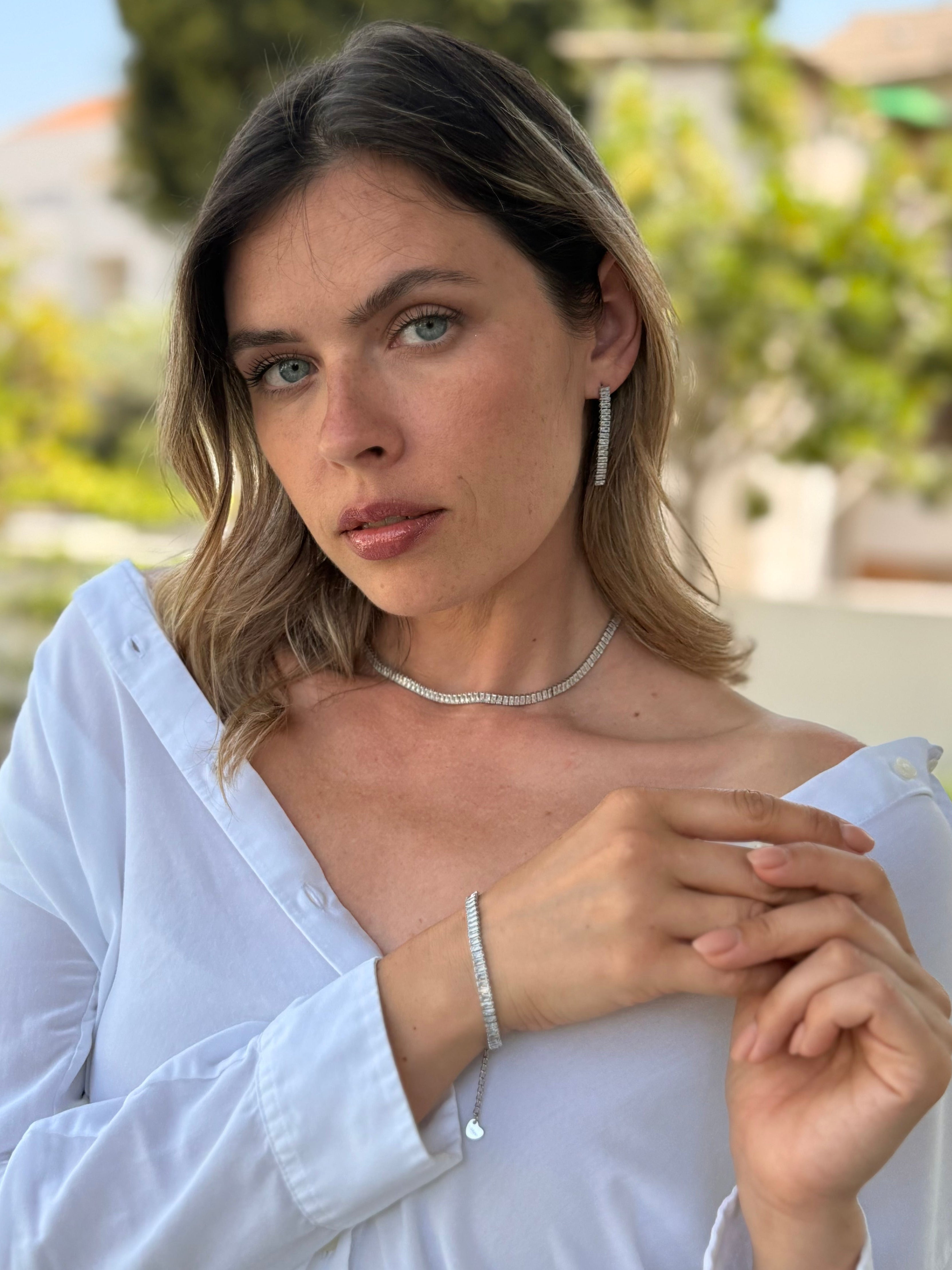 - תכשיטי Stainless Steel בגוון כסף עם אבנים מודבקות