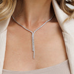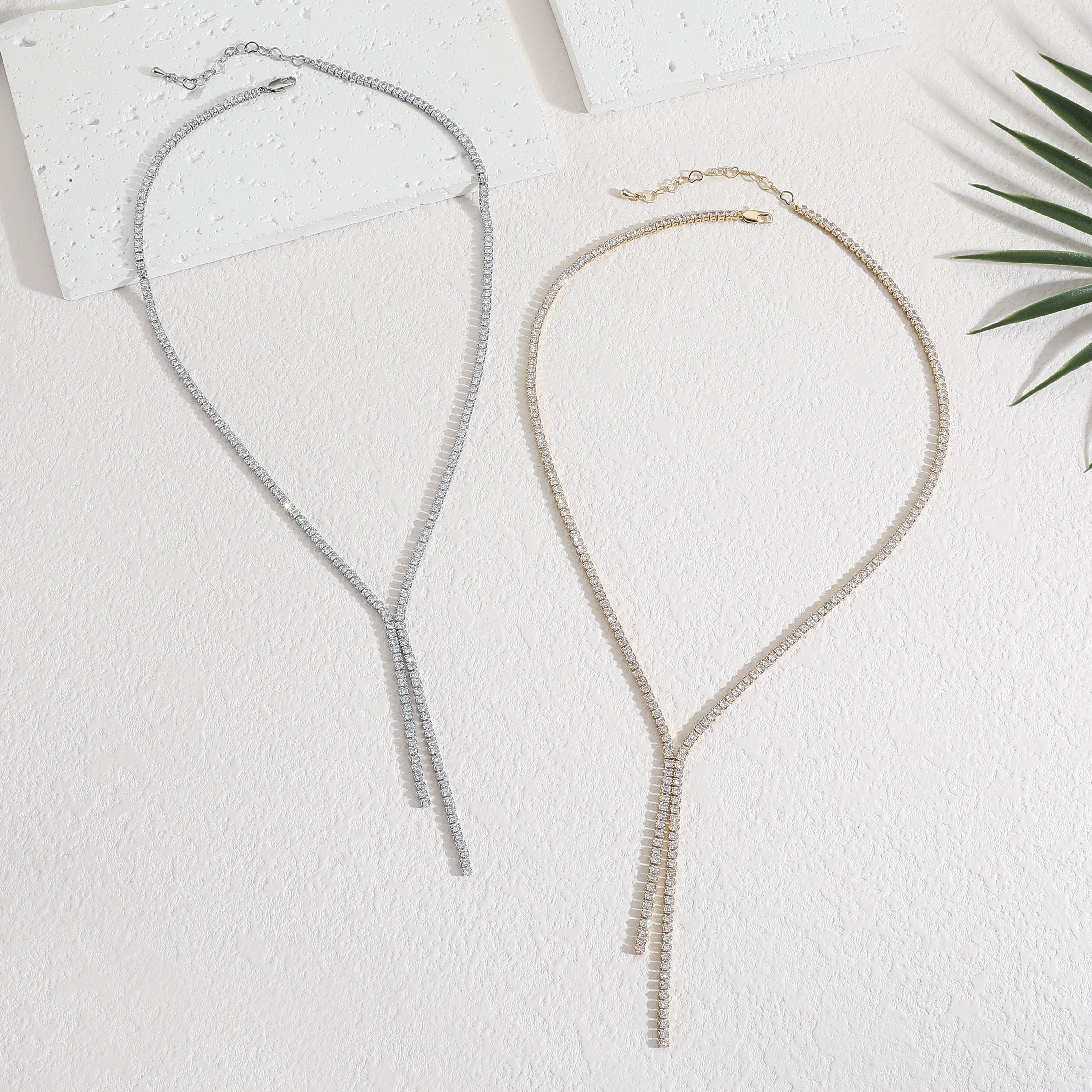 שרשרת טניס נופלת ליאו היא שרשרת נופלת משובצת זרקונים בצורת וי עמוק בעלת נוכחות מהפנטת.