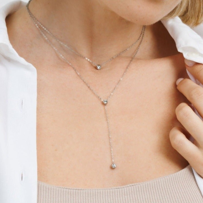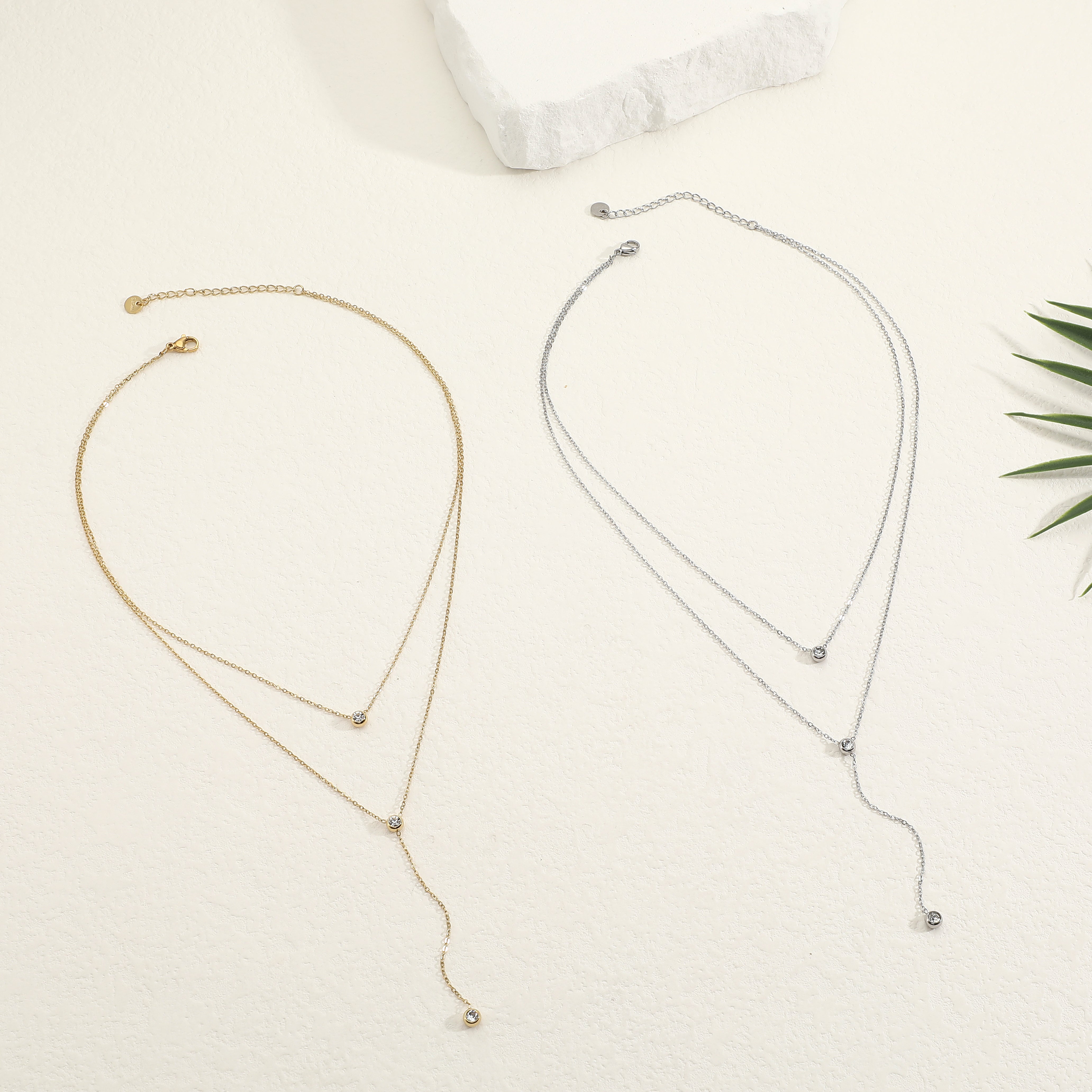 שרשרת כפולה בלינגי היא שרשרת 2 שורות נופלת בשילוב 3 זרקונים עדינים שתשב עליך פשוט בול.