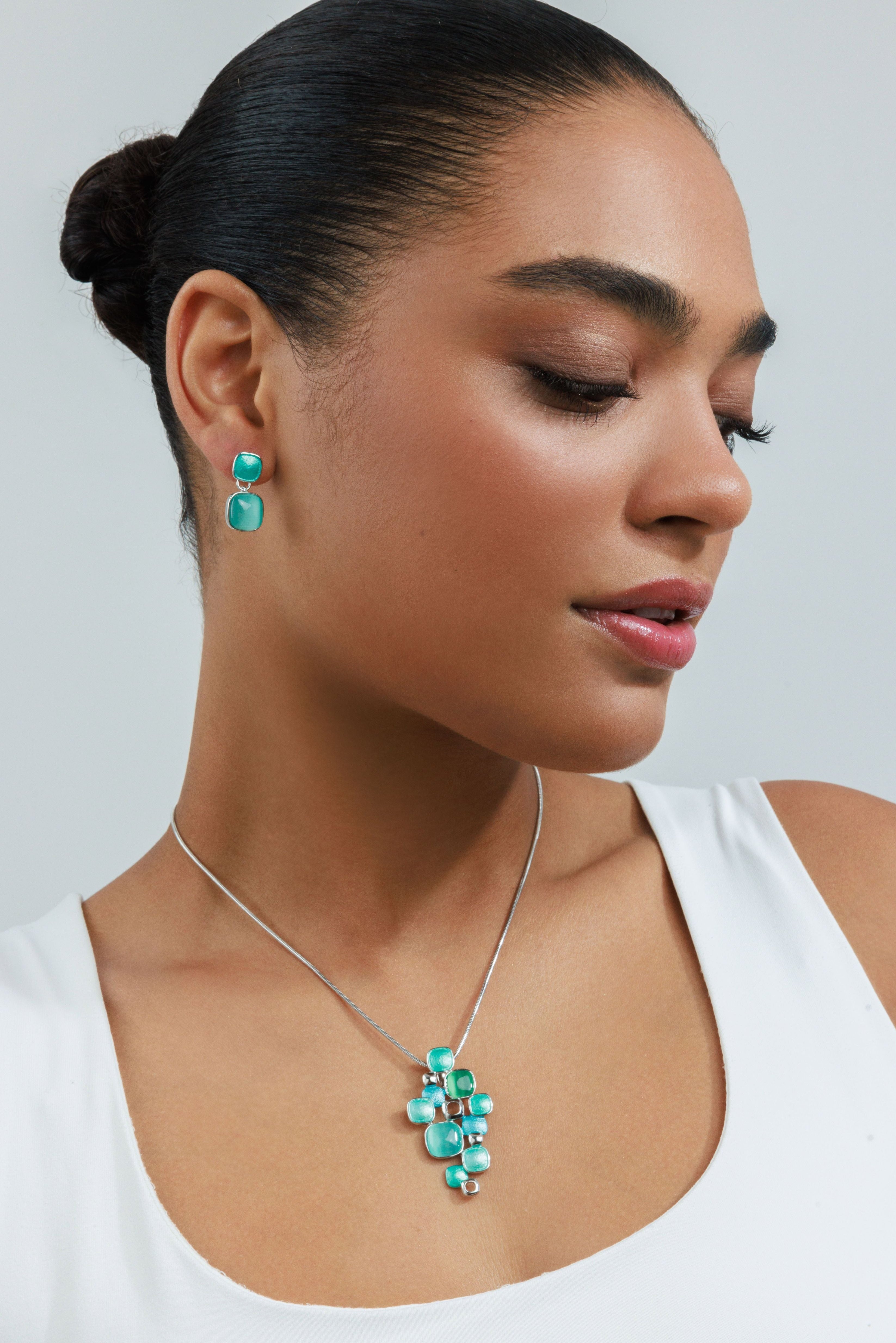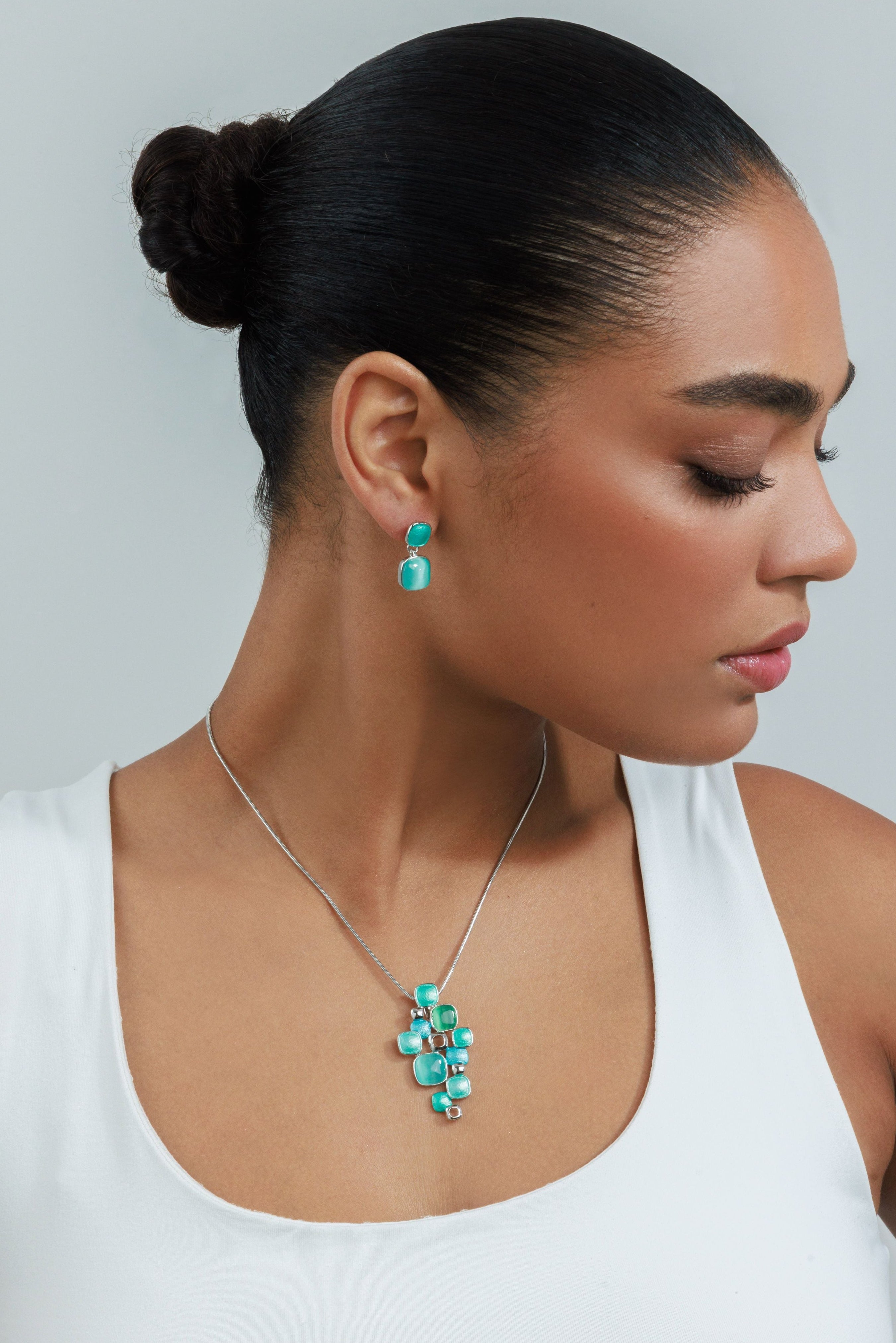 שרשרת ליאן היא שרשרת תליונים מרובעים ומעוצבים בשילוב אלמנטים מהממים בגווני טורקיז.