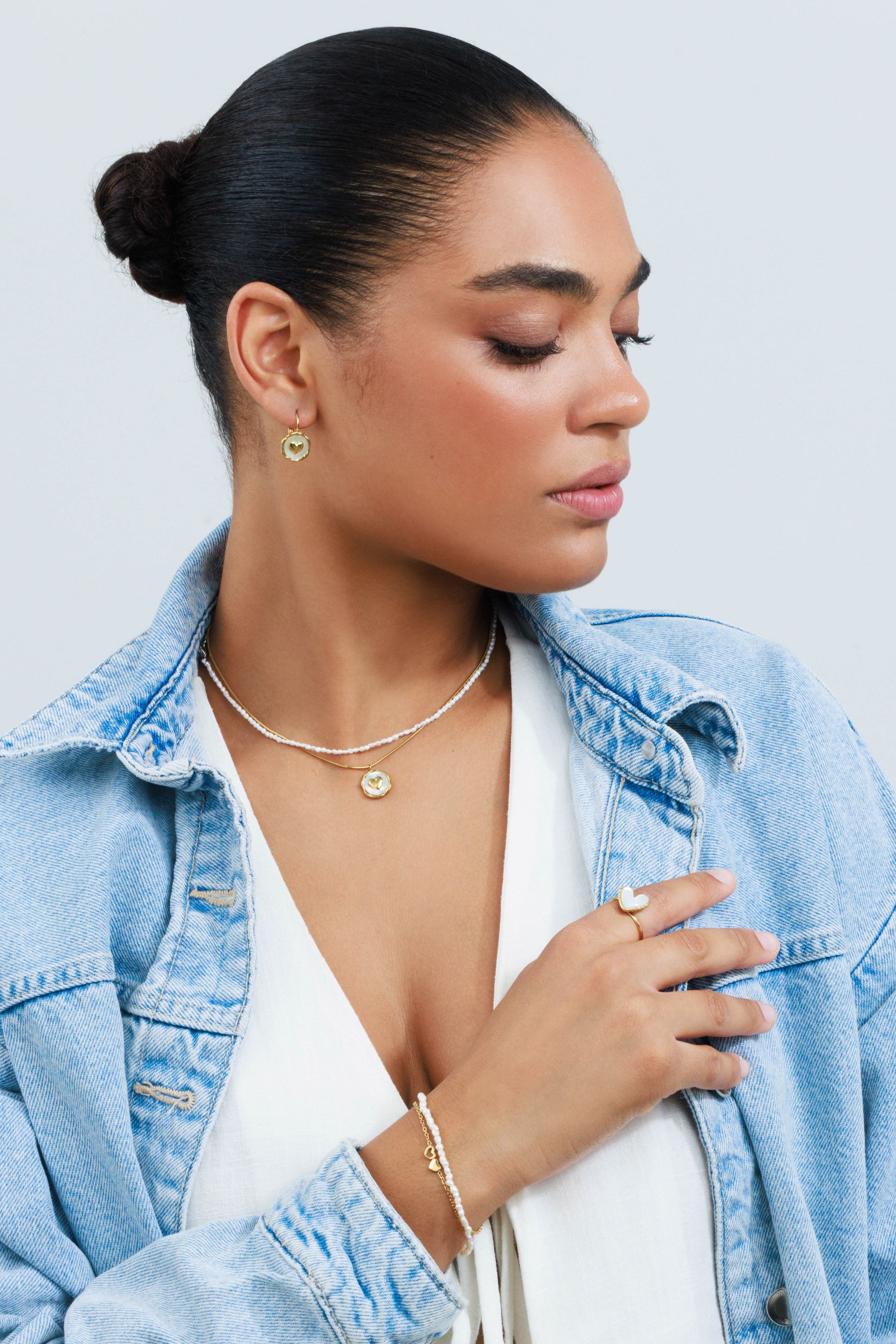 שרשרת ניו שייל לב היא שרשרת עם תליון מעוצב דמוי צדף לבן היסטרי בשילוב לב עדין.