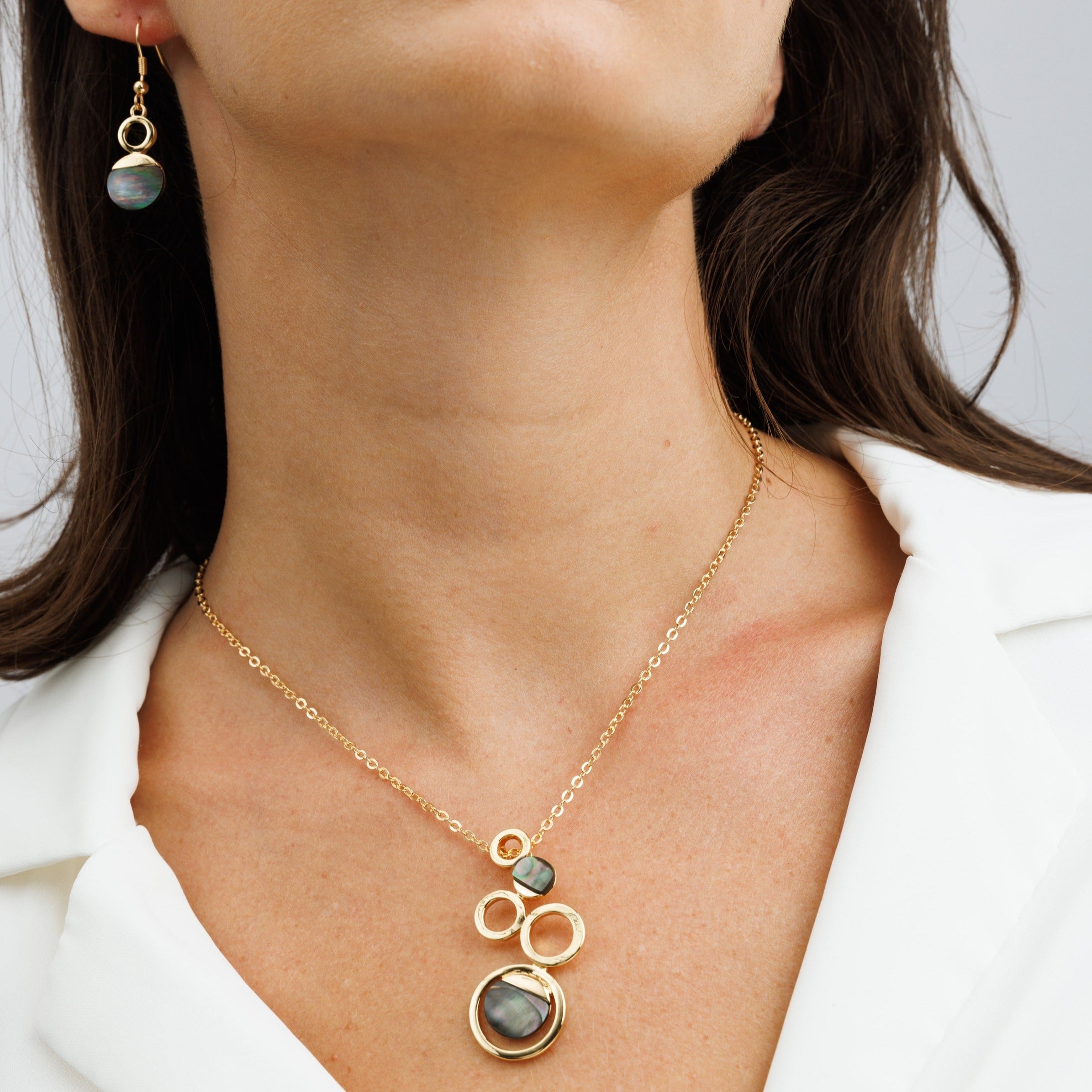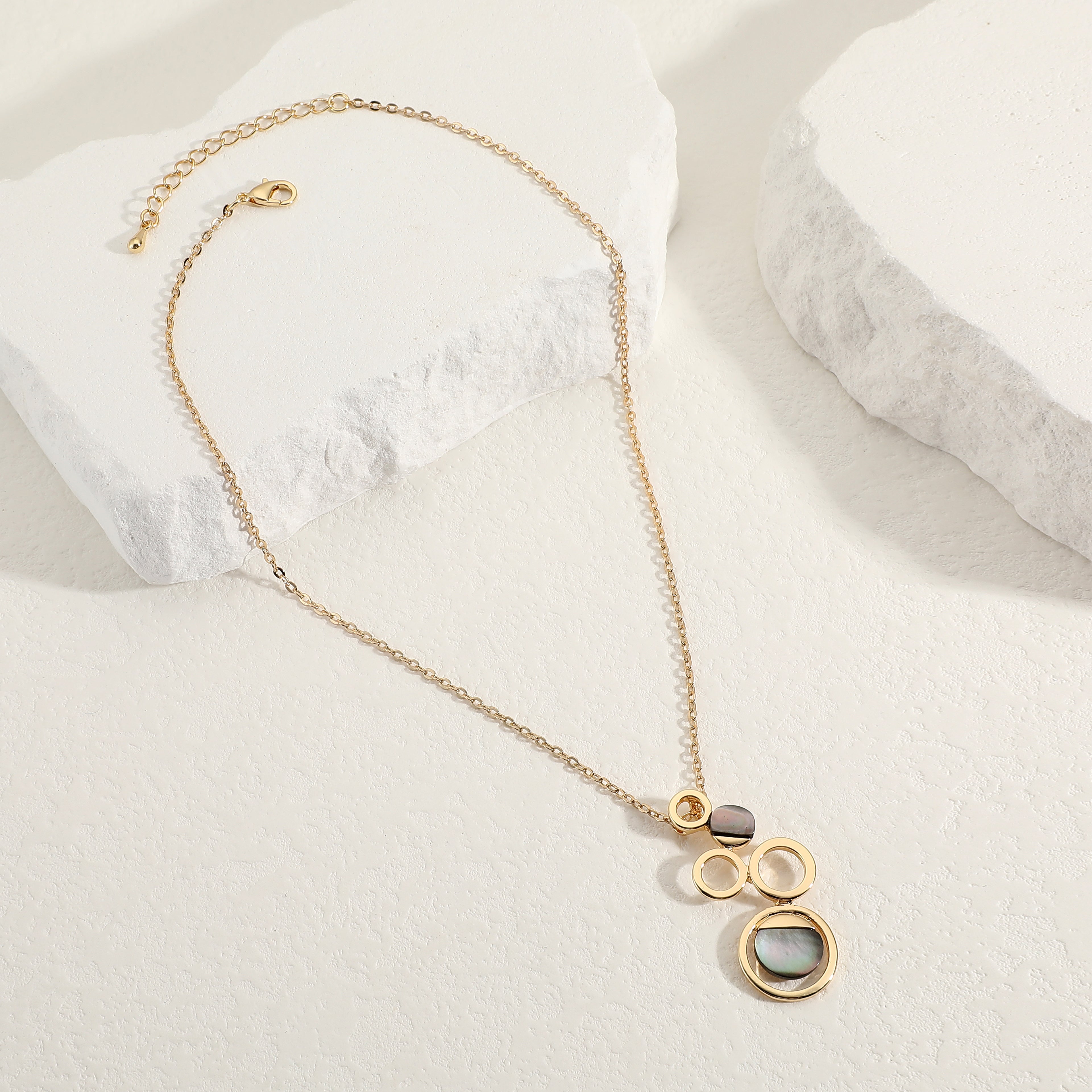 שרשרת ניקולה שייל היא שרשרת חדשנית ועדינה, שמשלבת באופן מושלם בין אלמנטים עגולים בגדלים שונים לבין צדף אפור שחור.