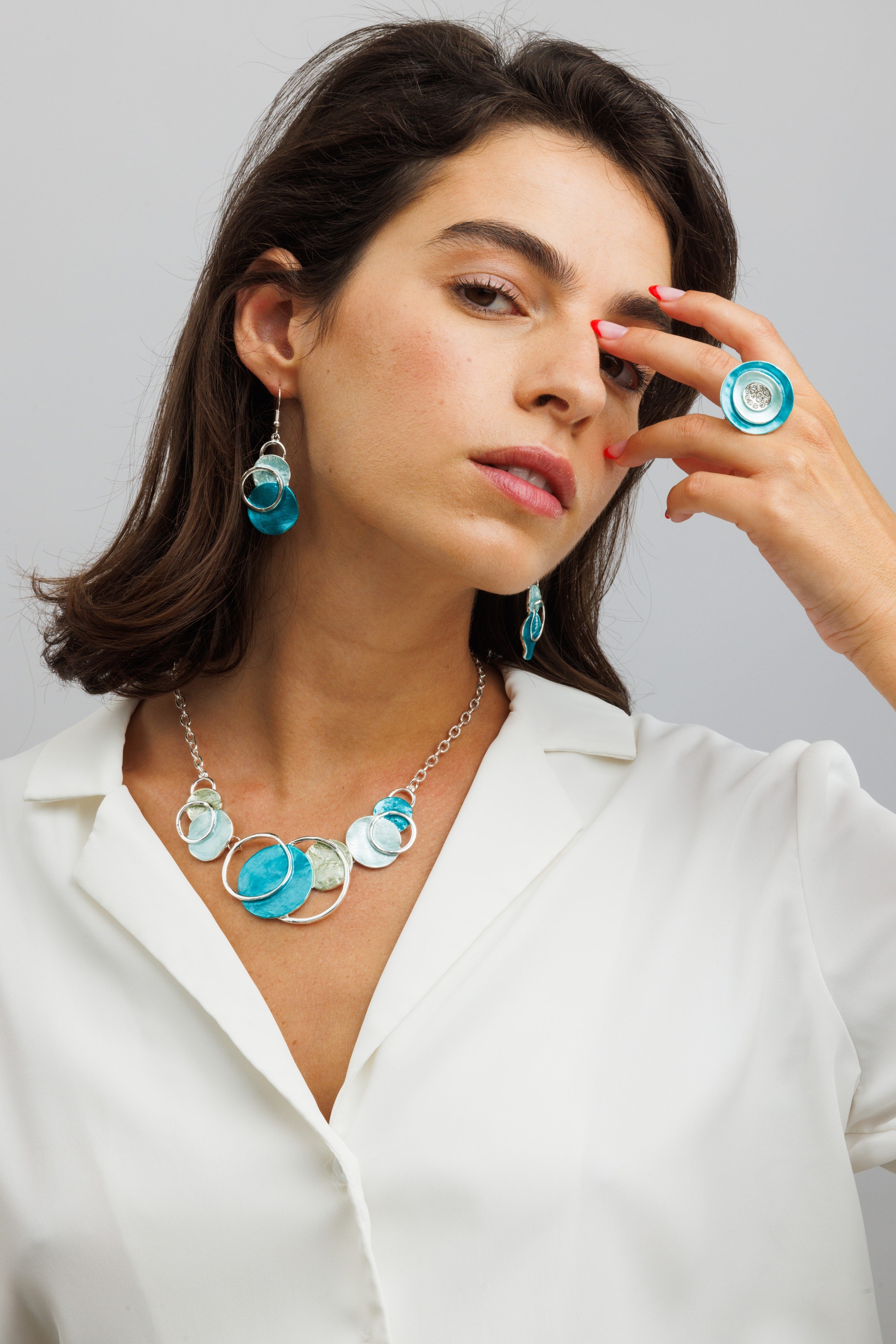 תכשיט זה חלק מקולקציית התכשיטים בגוונים ייחודיים המתקבלים באמצעות צביעה בעבודת יד.
