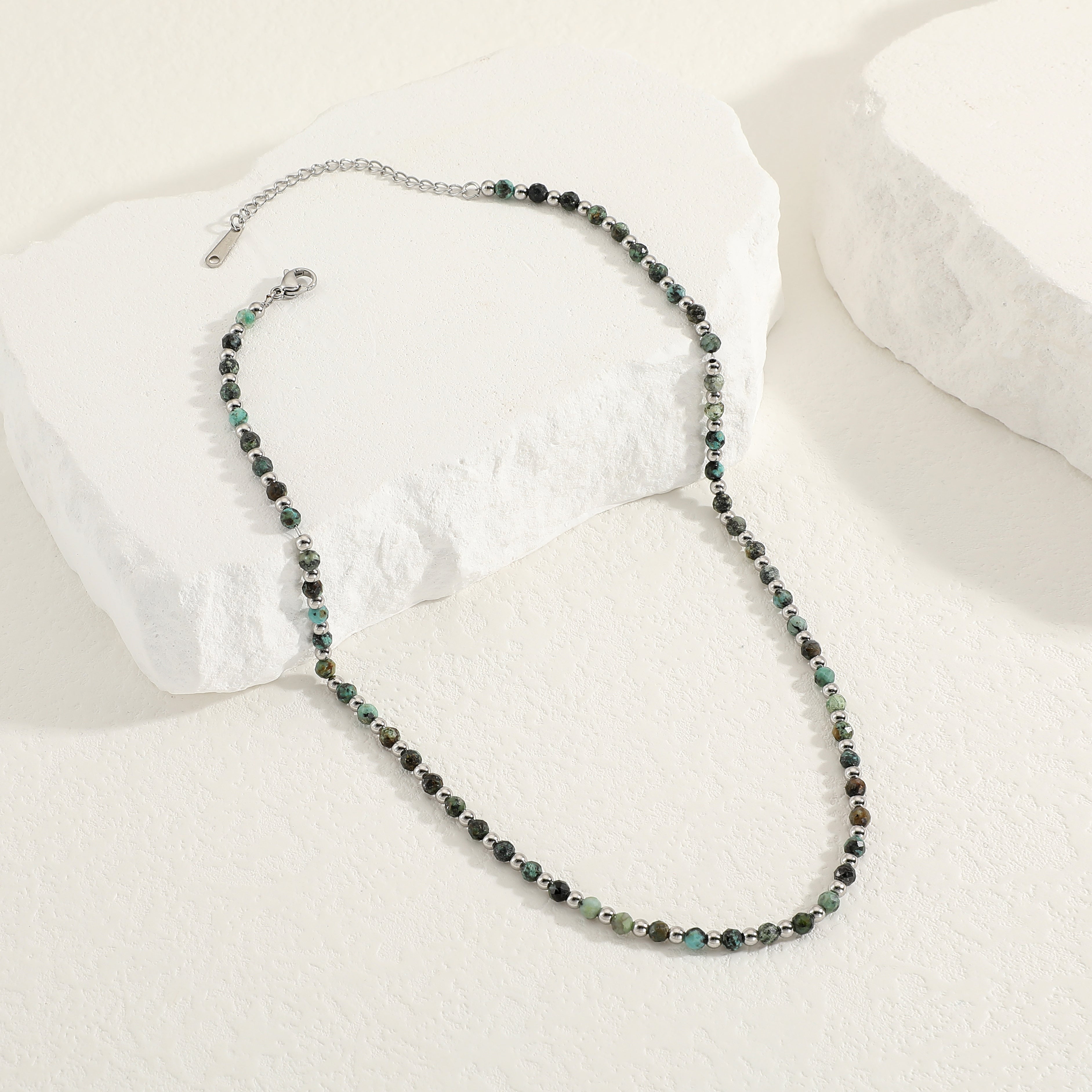 בשרשרת שזורות אבנים אמיתיות בגווני ירקרק.