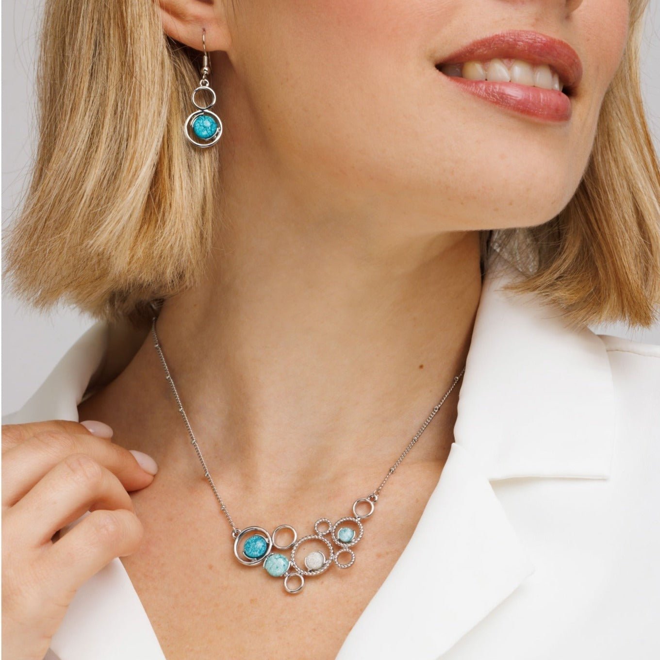 שרשרת סייפיר טורקיז היא שרשרת בעלת אלמנטים עגולים בגווני טורקיז משגעים.