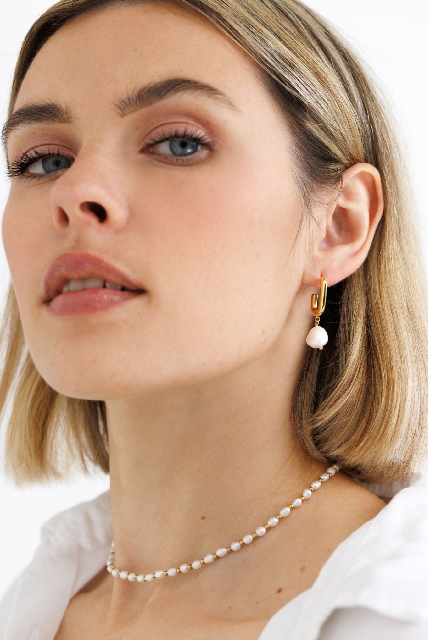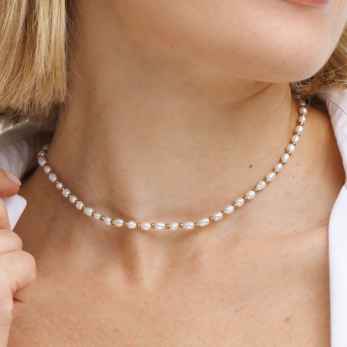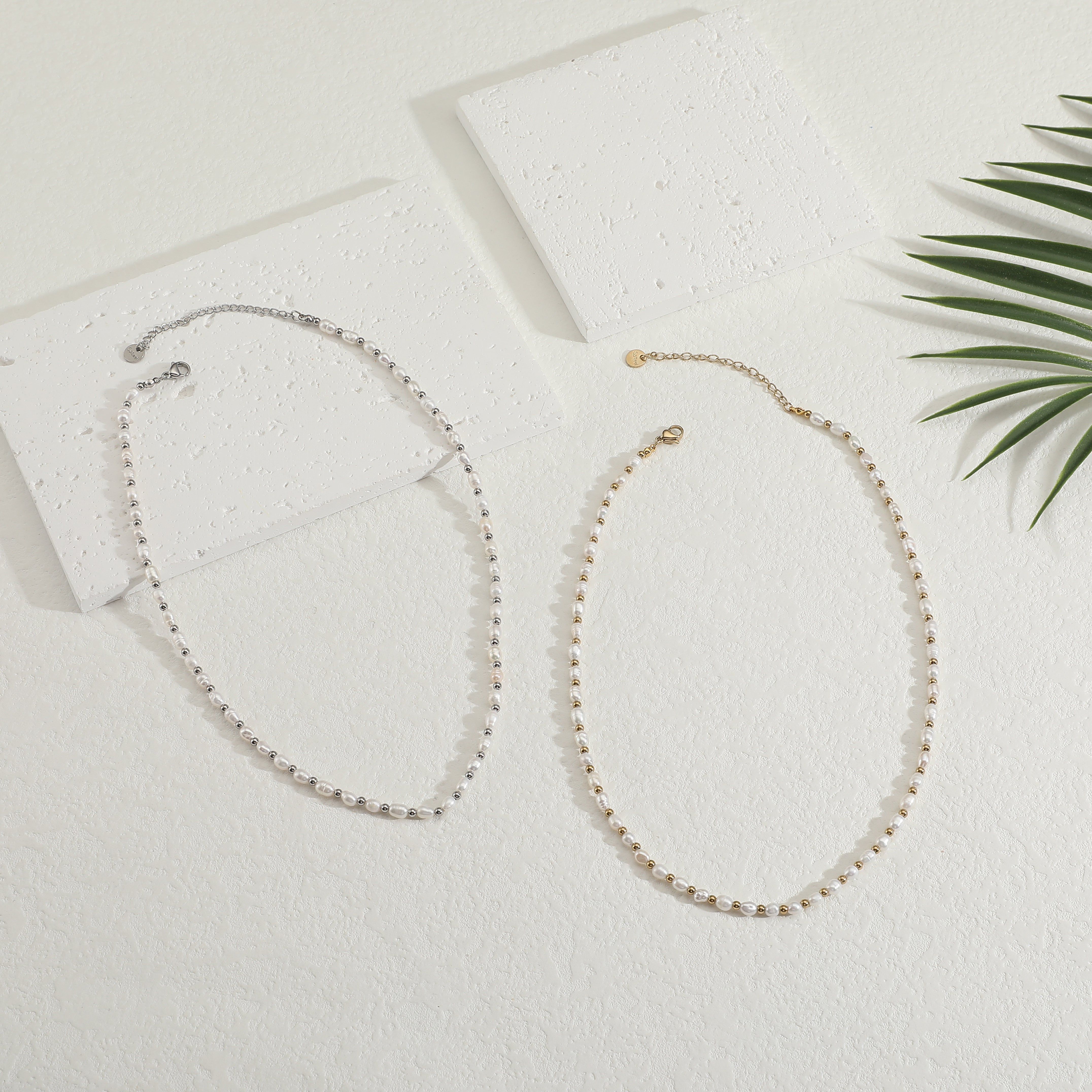 שרשרת פנינים דקה, עדינה וקלאסית בשילוב עיגולים עדינים למראה קלאסי ונקי.