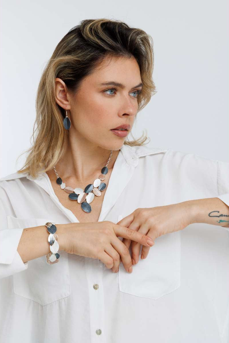 תכשיט זה הינו חלק מקולקציית התכשיטים בגוונים ייחודיים המתקבלים באמצעות צביעה בעבודת יד.