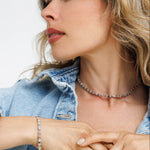 • תכשיטי Stainless Steel בגוון כסף עם אבנים מודבקות