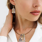 שרשרת רוזי גולד היא שרשרת מעוצבת עם תליון מרובע סופר ייחודי שמשלבת גווני חום וזהב, פטרנים שונים וריקוע עדין.