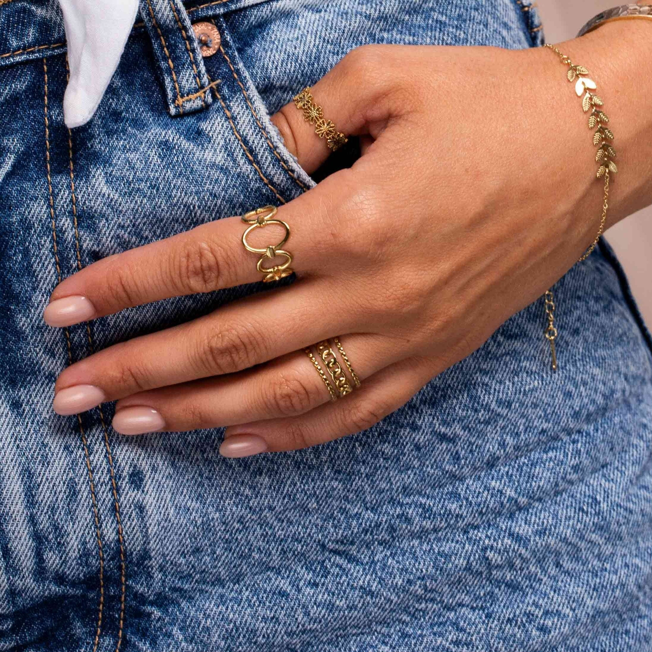 הטבעת יפה בפני עצמה או בשילוב הצמיד התואם.