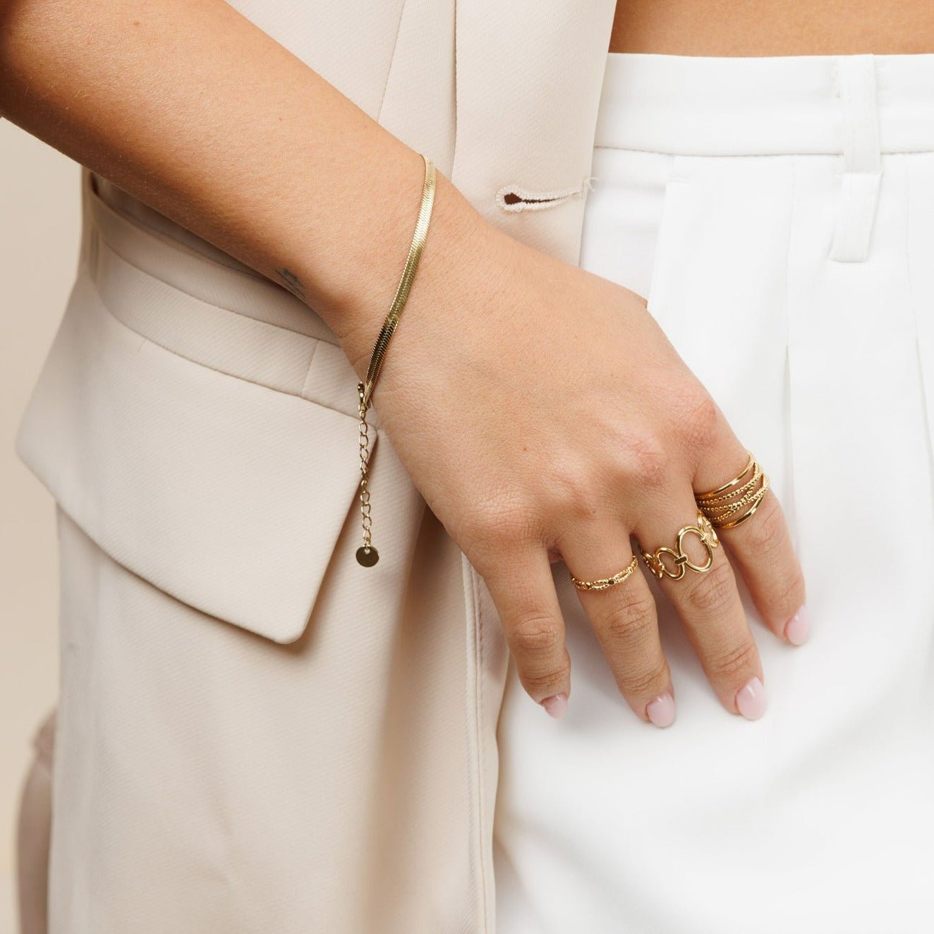 כל תכשיט מהקולקציה, מעגילים ושרשראות ועד לצמידים וטבעות, עשוי מסטיינלס סטיל שמבטיח גימור מושלם ושמירה על מראה חדש לאורך זמן.