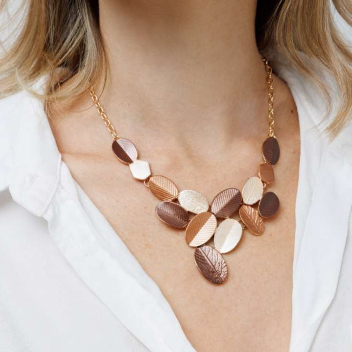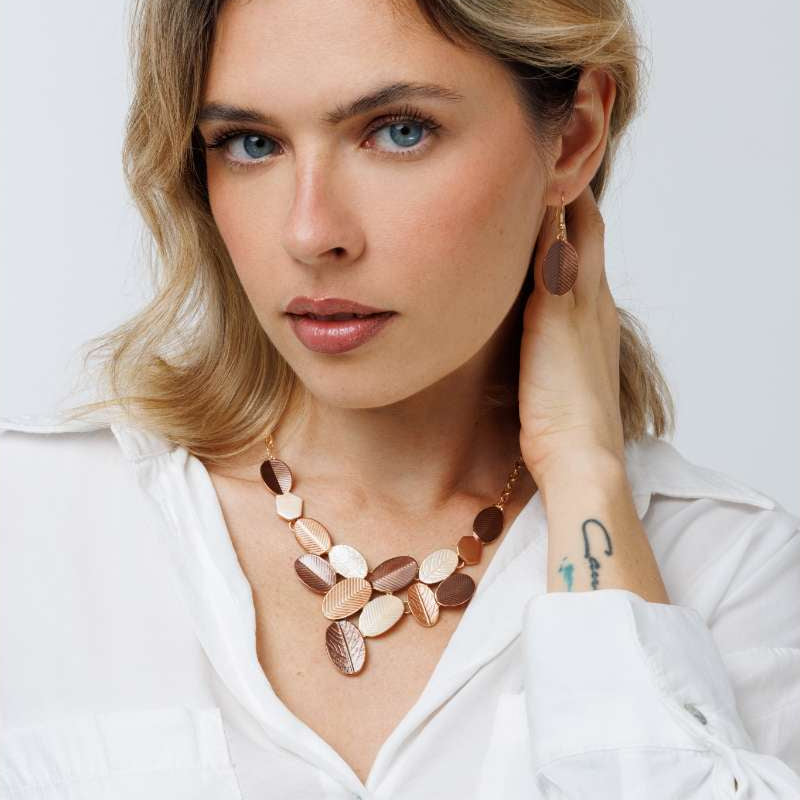 סט שרשרת, עגילי וצמיד פרנסי הוא סט עלים מהמם שמשלב בין תשומת לב לפרטים הקטנים ונוכחות.