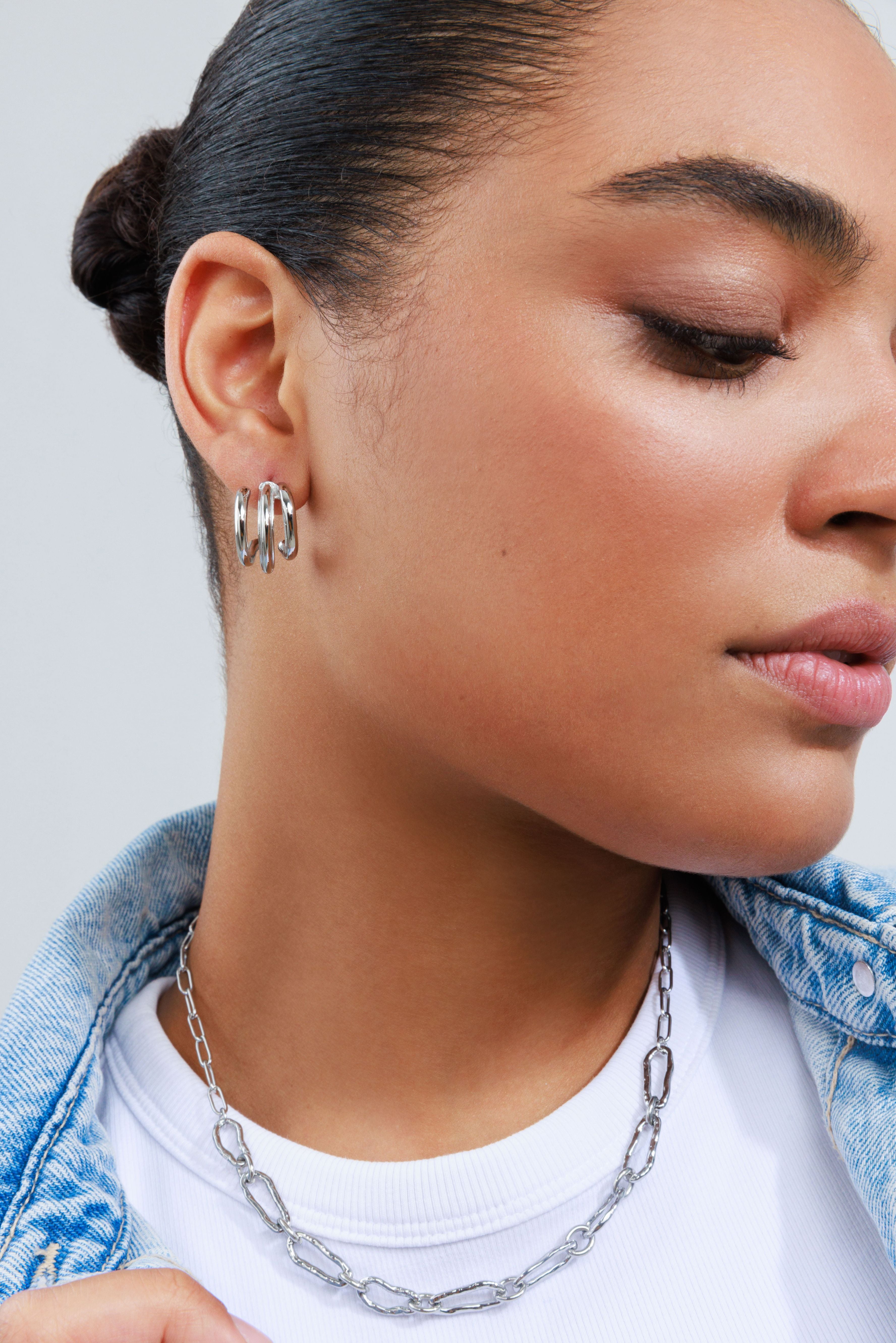 עגילי חישוק טריפל צ'אנק הם עגילי חישוק המורכבים מ3 שכבות כך שיוצרות מראה ייחודי ומלא נוכחות.