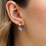 עגילי קלייר גולד הם עגילים צמודים בעיצוב קלאסי עם טוויסט של גווני חום בהיר ואפור.