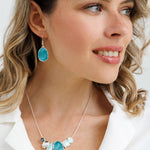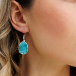 עגילי קמילה טורקיז הם עגילי תלייה עם תליון מאורך בגוון טורקיז היסטרי עם אלמנט מרוקע עדין.