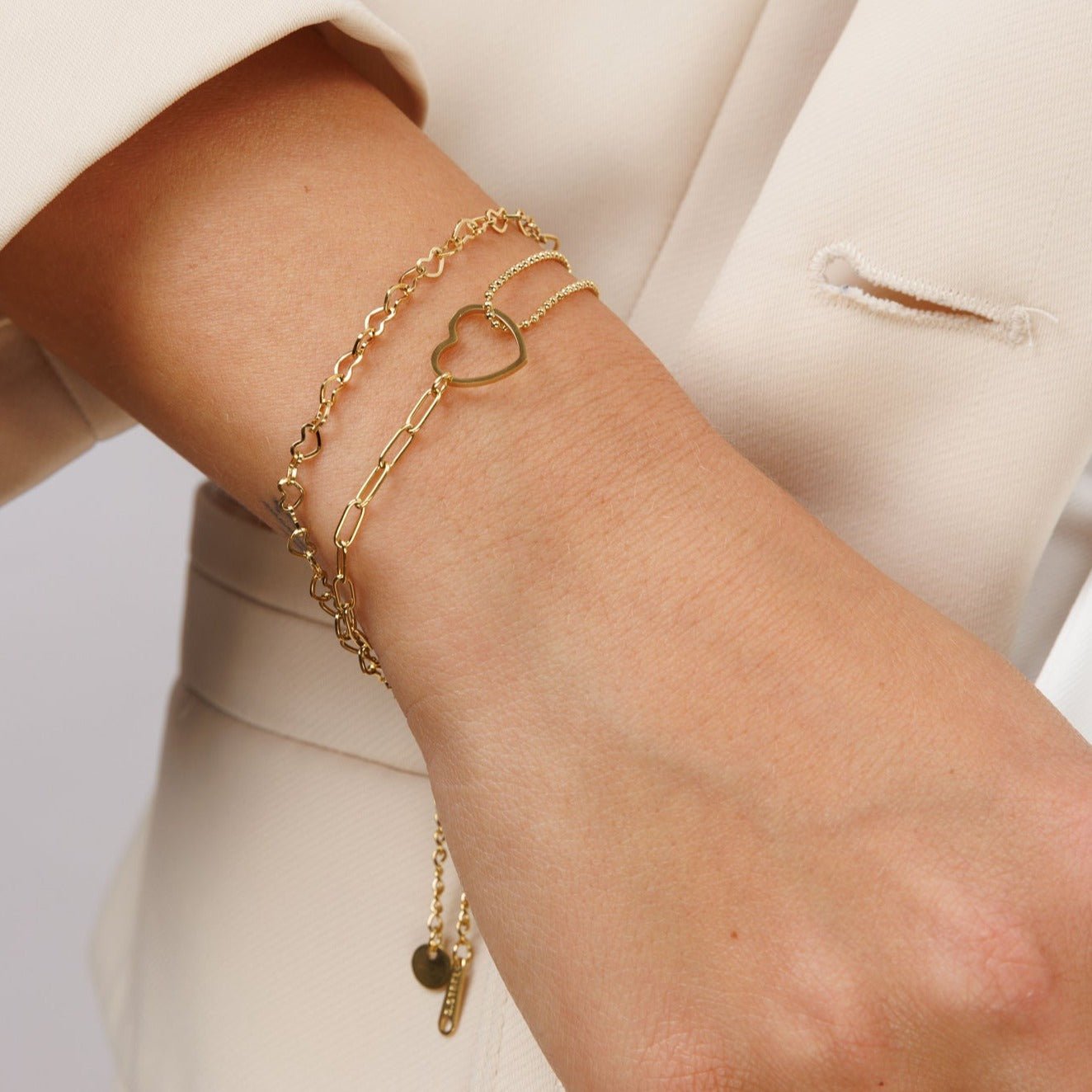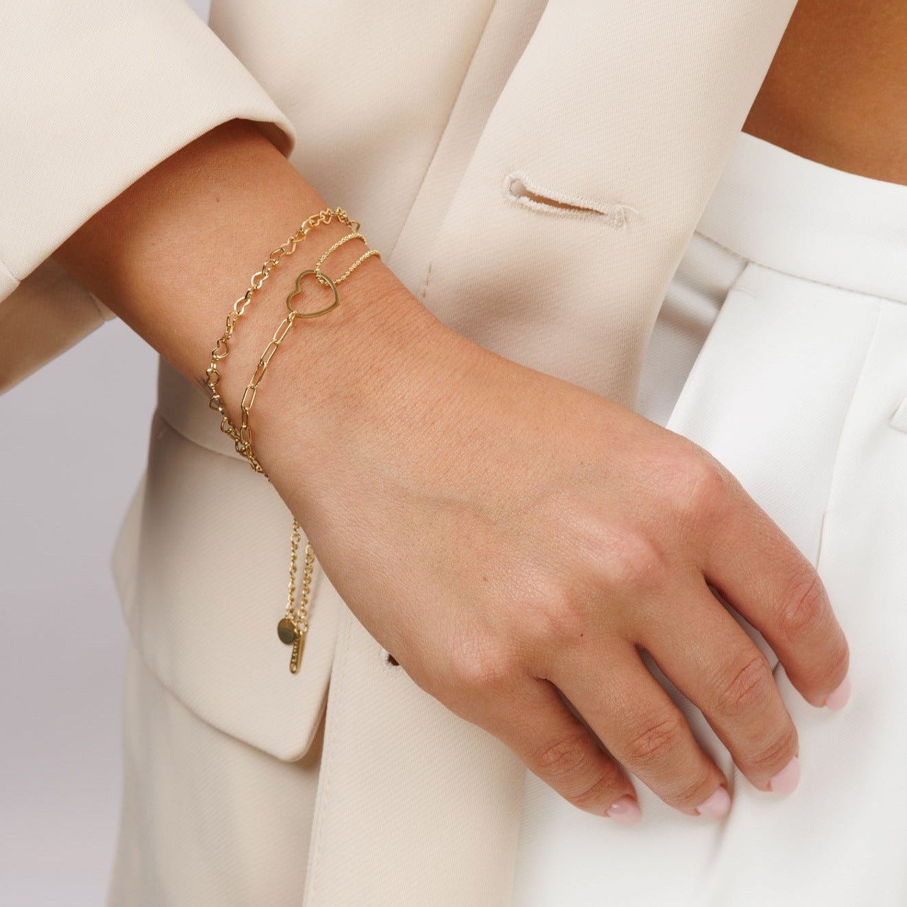 הצמיד מחבר בין אלמנטים שונים עם לב חלול ועדין.