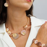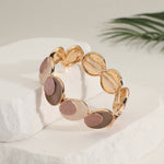 צמיד סטן הוא צמיד בגווני חום עם אלמנטים של עיגול רקוע ומבריק.
