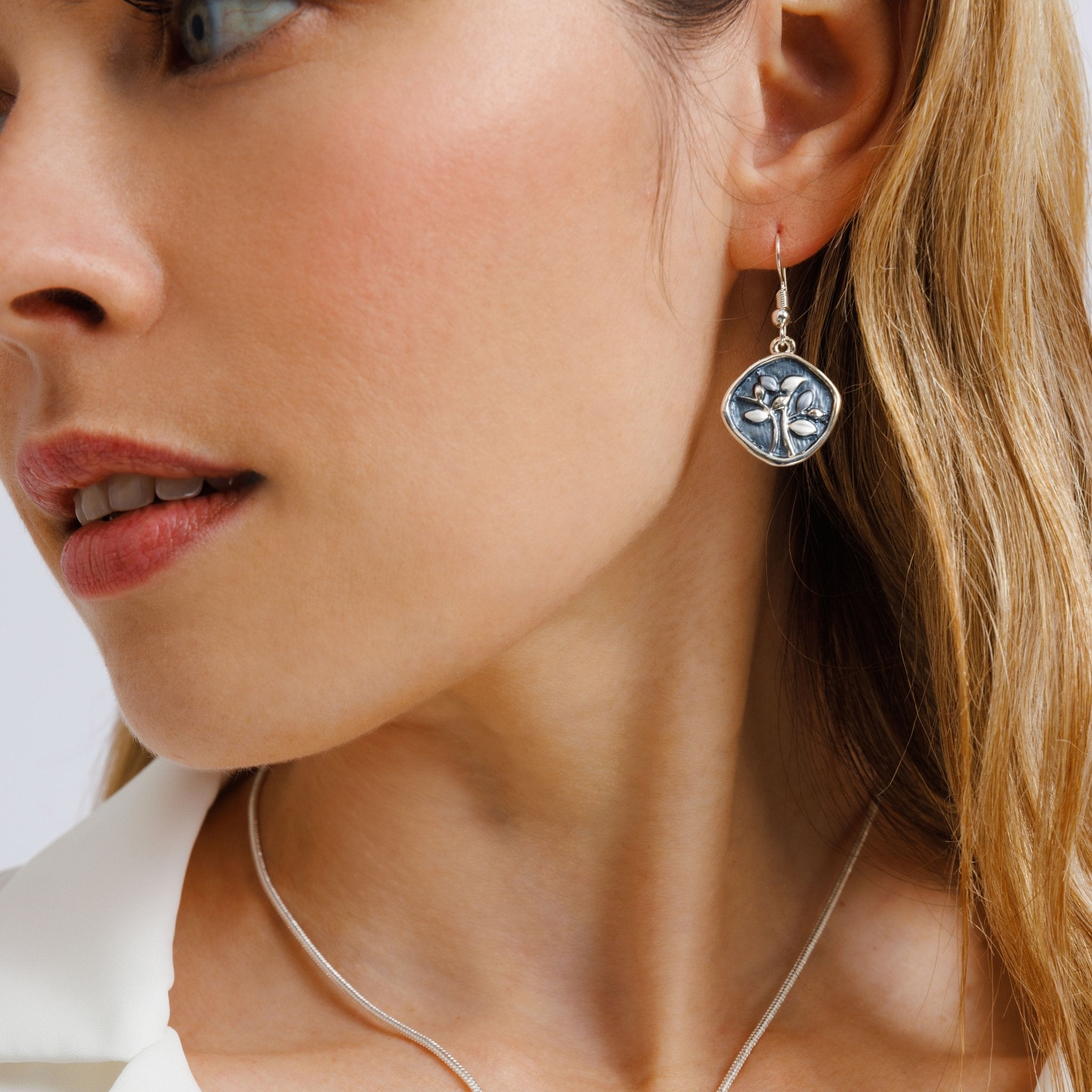 עגילי גריי טרי הם עגילים נופלים עם דוגמת עץ ייחודיים ומנצחים.